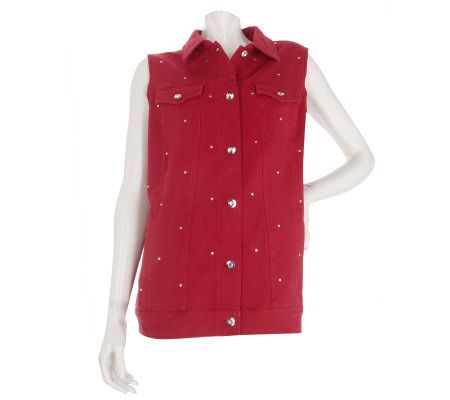 If it's not fun, why wear it? And, there's no way anyone can say this sparkle vest is boring. Rhinestone buttons secure the front, while additional rhinestones are scattered throughout. From Quacker Factory(R).