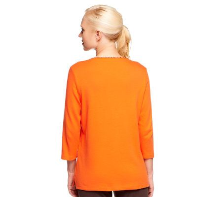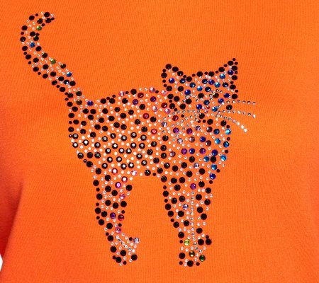 Add a touch of sparkle to your Halloween ensemble with this 3/4-sleeve T-shirt. It provides the perfect touch of spooky fun. From Quacker Factory(R).