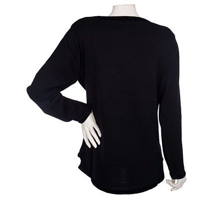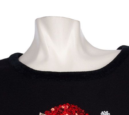 Sweet little Santa. Sequins, beading, and embroidery detail the front of this festive sweater. Chenille trim on the neckline, wrists, and bottom hem add to the seasonal look and feel. From Quacker Factory.