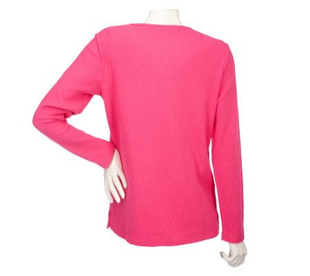 Quacker Factory Long Sleeve Waffle T-shirt w/Sparkle Triangle