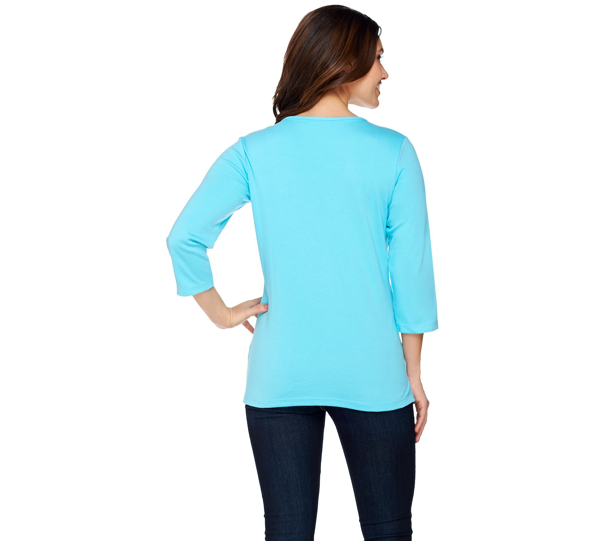 • Features: 3/4-length sleeves, V-neckline, rhinestone detail