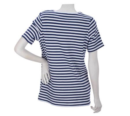 Quacker Factory Pearl and Bead Nautical Striped T-shirt