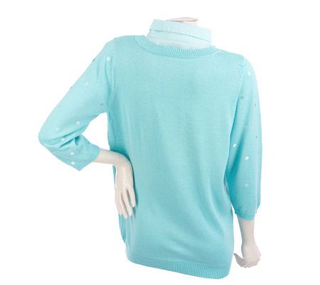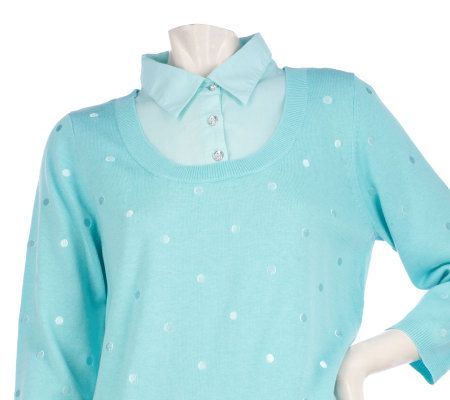 Quacker Factory Polka Dot Duet Sweater with Woven Collar