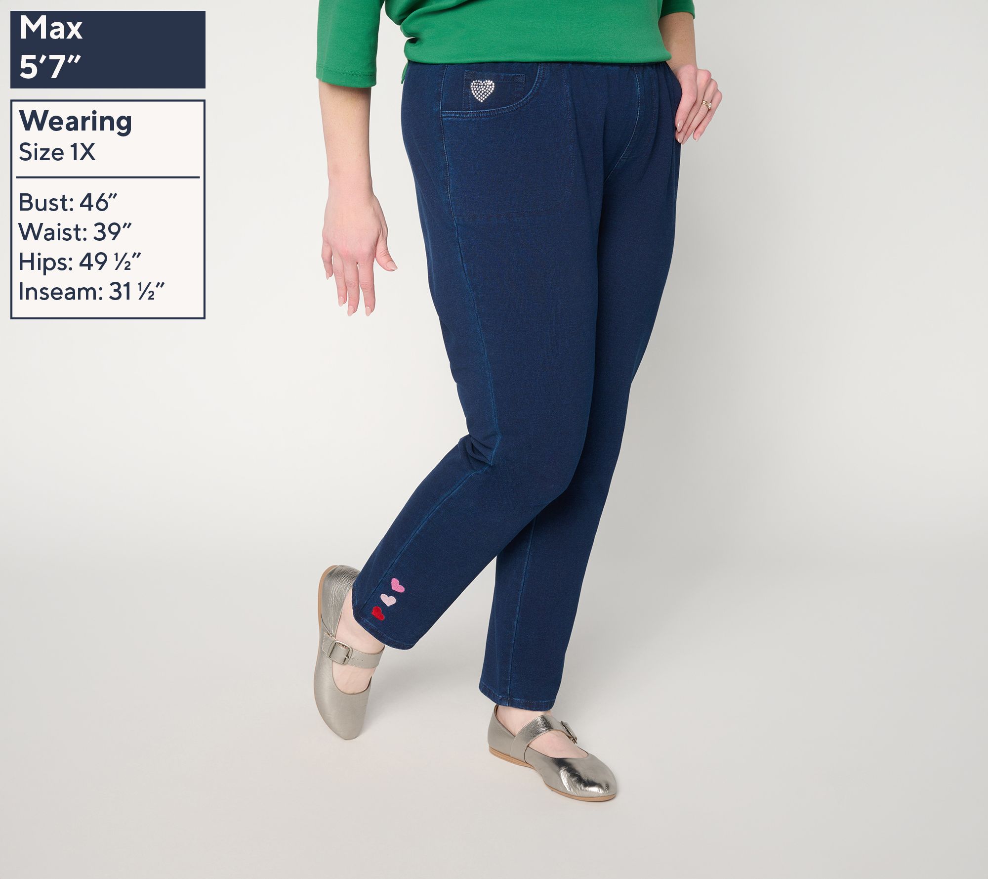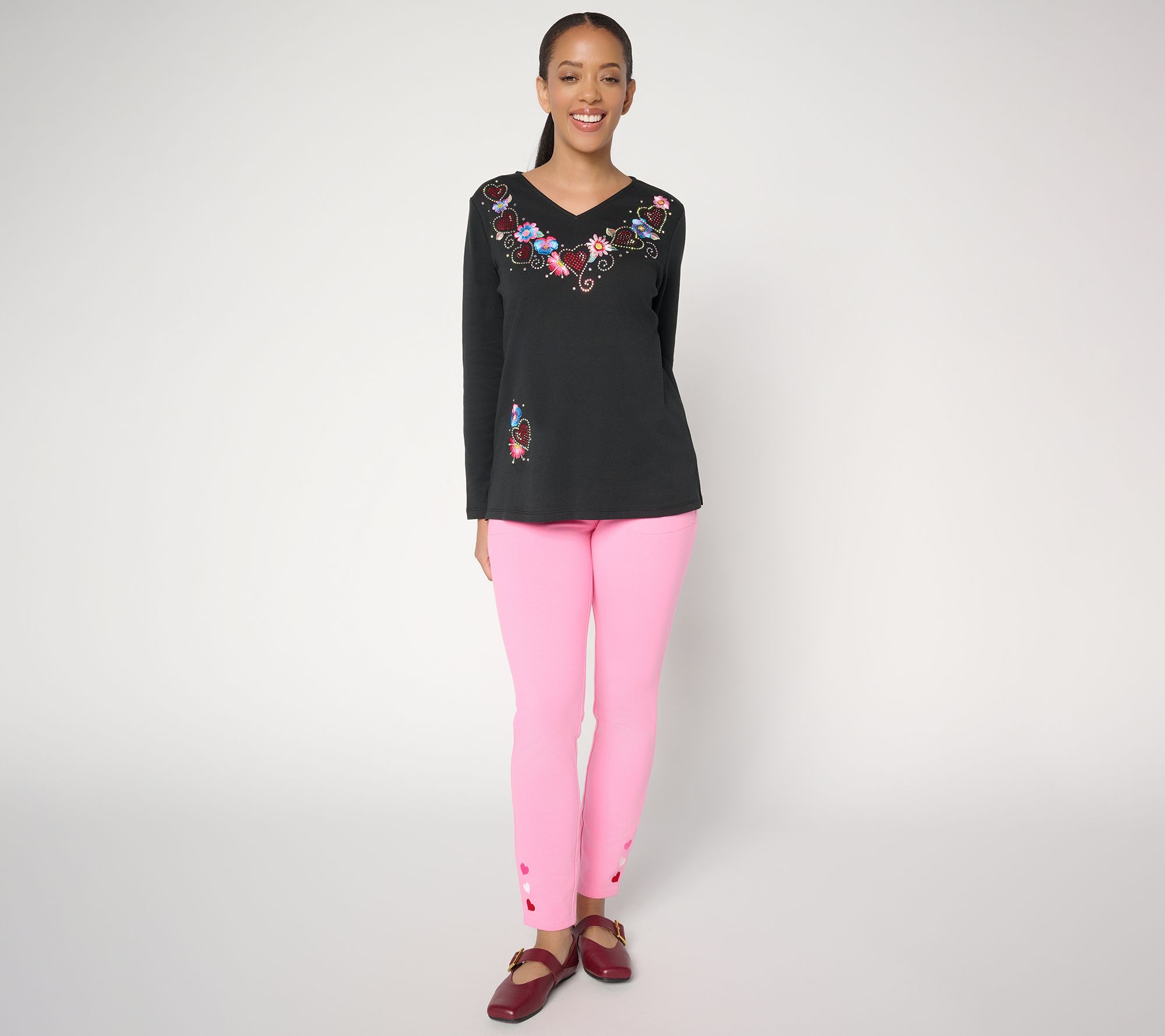 Galentine's Day outing? Settle on something subtle with these DreamJeannes leggings. They're a fun foundation for coffee meetups or casual days out. And, with barely there embroidery at the bottom, you can continue the love all year long. From Quacker Factory®.