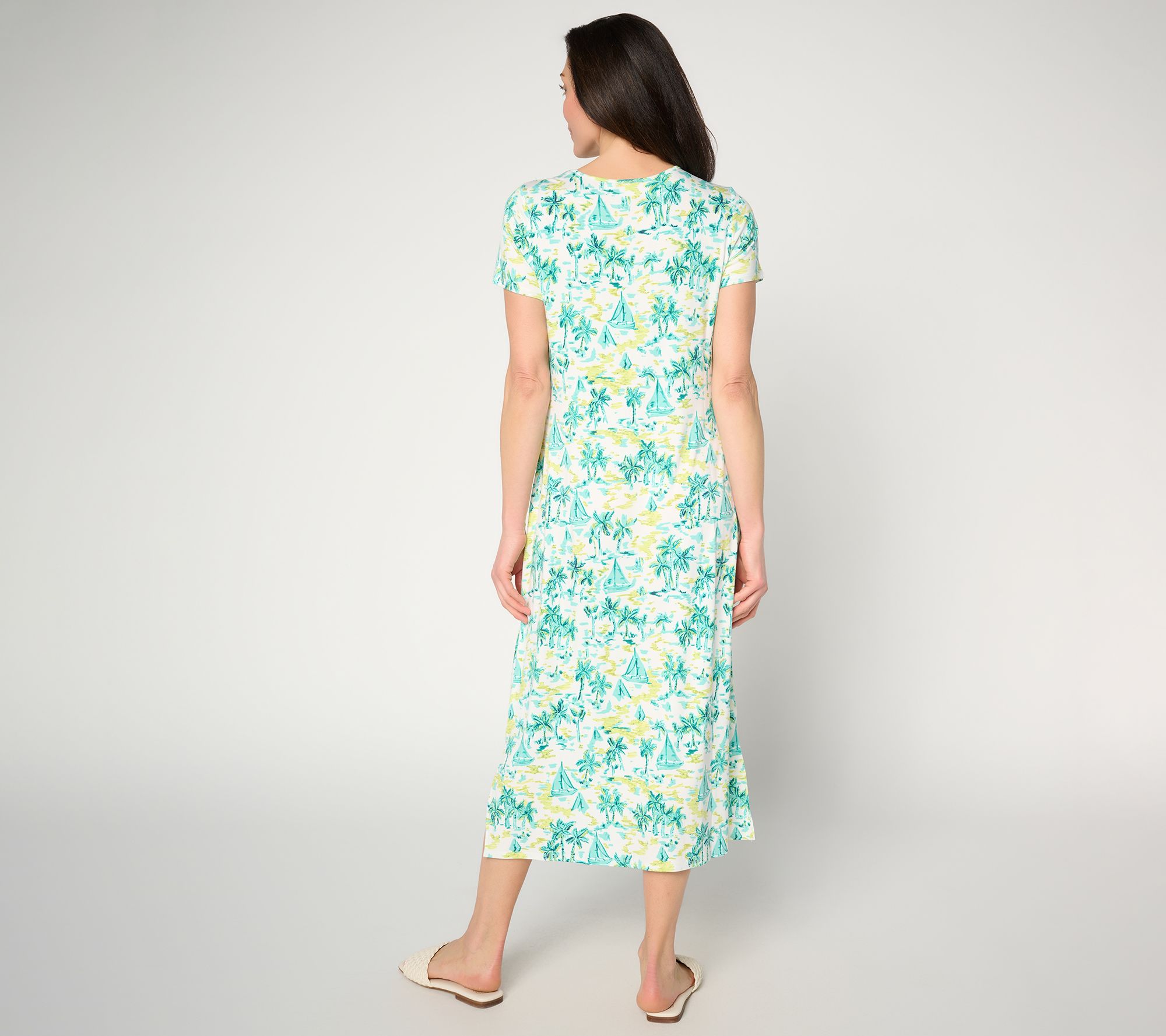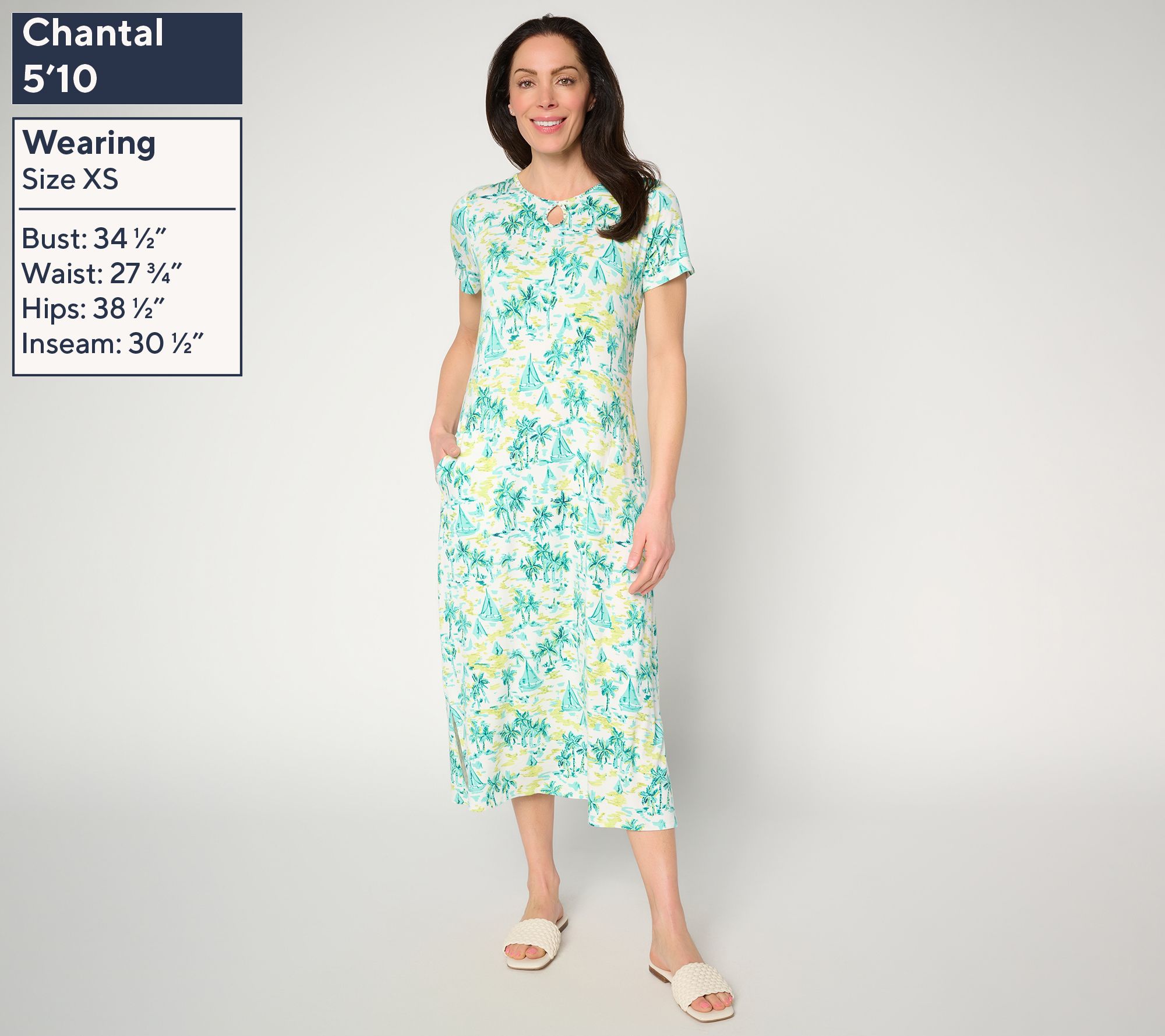 Chasing the day's adventures becomes effortless in this short-sleeve dress, where a round neckline and keyhole accent meet the everyday practicality of roomy pockets. A comfortably semi-fitted shape and soft stretch knit let you move with ease whether you're headed to brunch, appointments, or a seaside stroll. From Quacker Factory®.