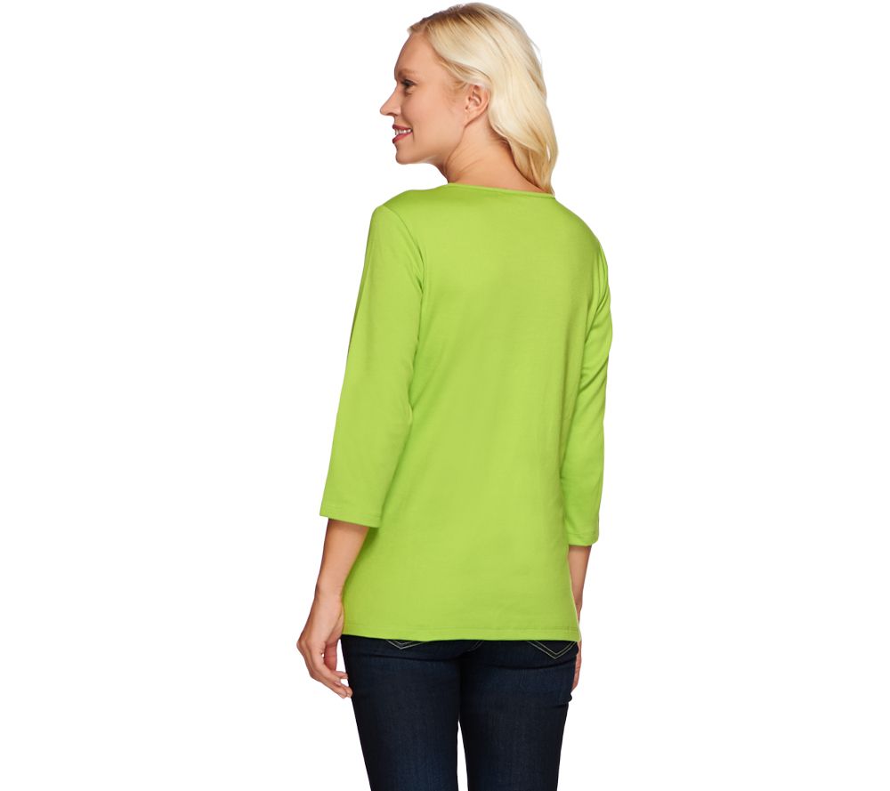 Quacker Factory Scalloped Snowflake Embroidered 3/4 Sleeve Top