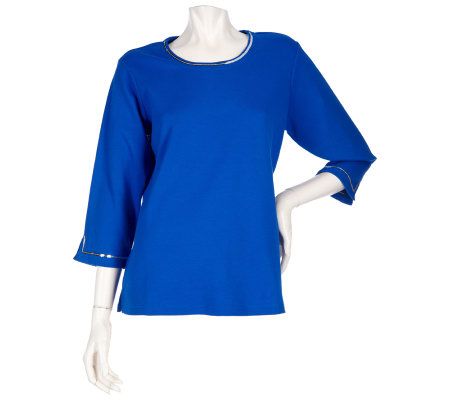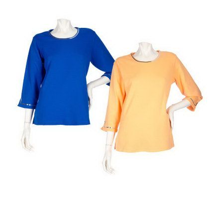 Quacker Factory Set of 2 3/4 Sleeve Sequin Trimmed T-shirts