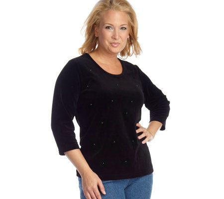 Double the fashion fun with this set of two velour knit tops. Scattered sequins add just a the right touch of sparkling sophistication. From Quacker Factory.