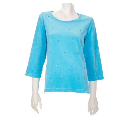 Quacker Factory Set of 2 Sequin Velour 3/4 Sleeve Knit Tops