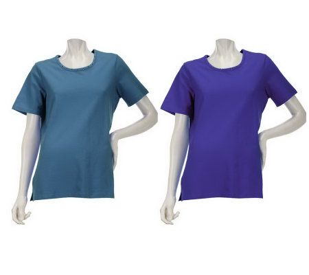 Quacker Factory Set of 2 Short Sleeve Sparkle Neck T-shirts