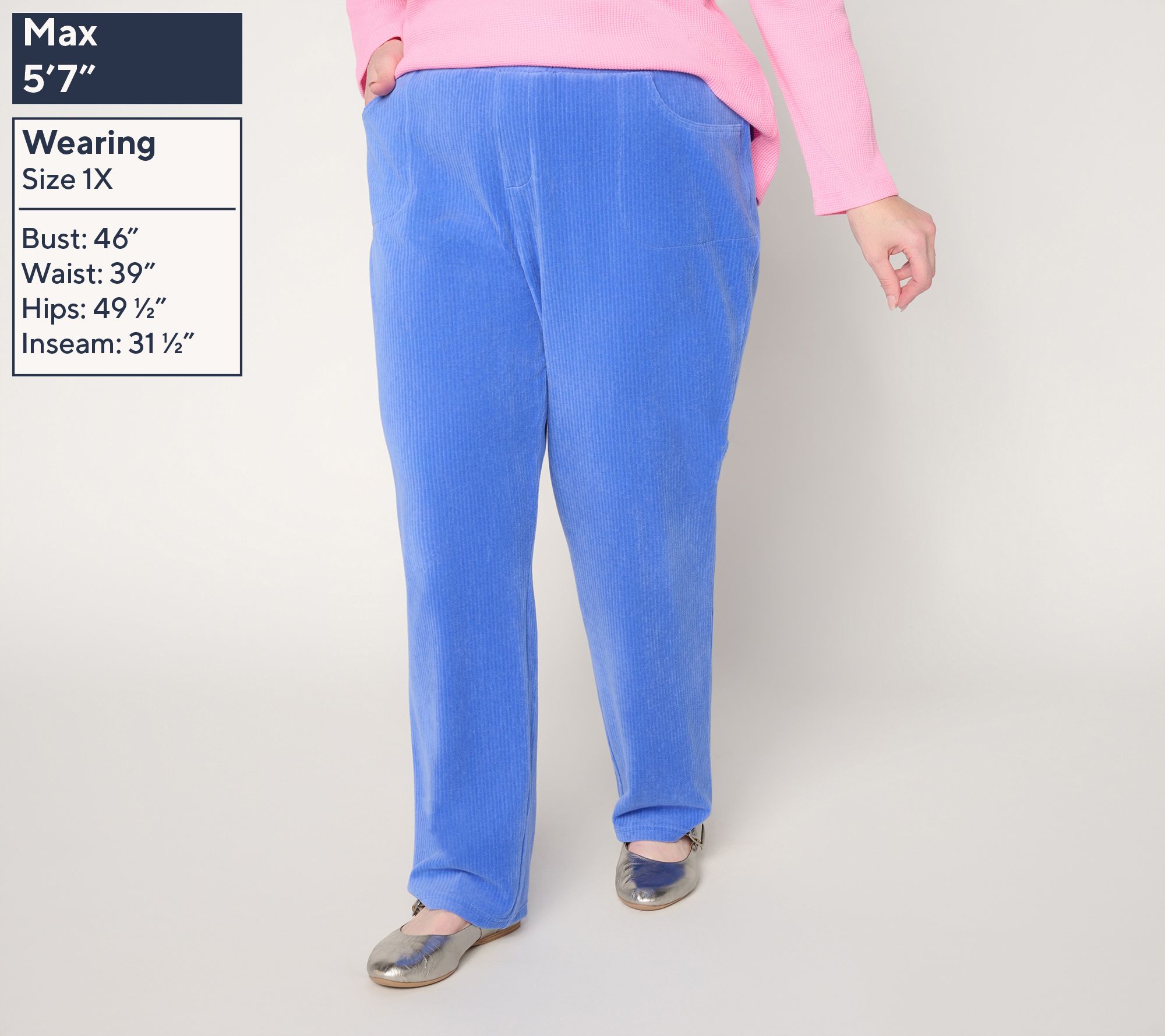 Update your seasonal style with corduroy straight-leg pants that deliver the cozy texture you love and the versatility you need. The elastic waistband and functional pockets make these pants an easy choice for workdays, family gatherings, or everyday outings, while the streamlined fit flatters your silhouette. From Quacker Factory®.