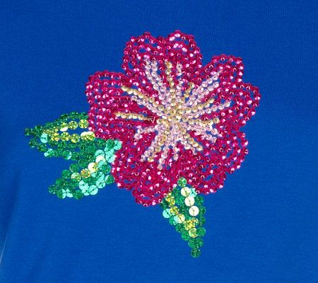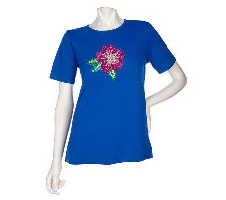 Quacker Factory Short Sleeve Tropical Sequin Sparkle T-shirt