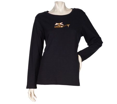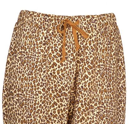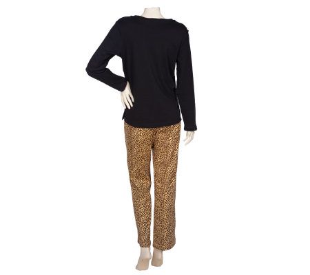 You'll love slumbering in this wildly attractive animal-print pajama set. Embroidery and sequin details on the top wow with wide-eyed appeal, while the soft, cotton fabric cuddles your curves. From Quacker Factory.