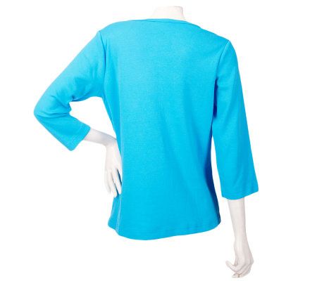 • 3/4 length sleeves, rounded neckline, side slits