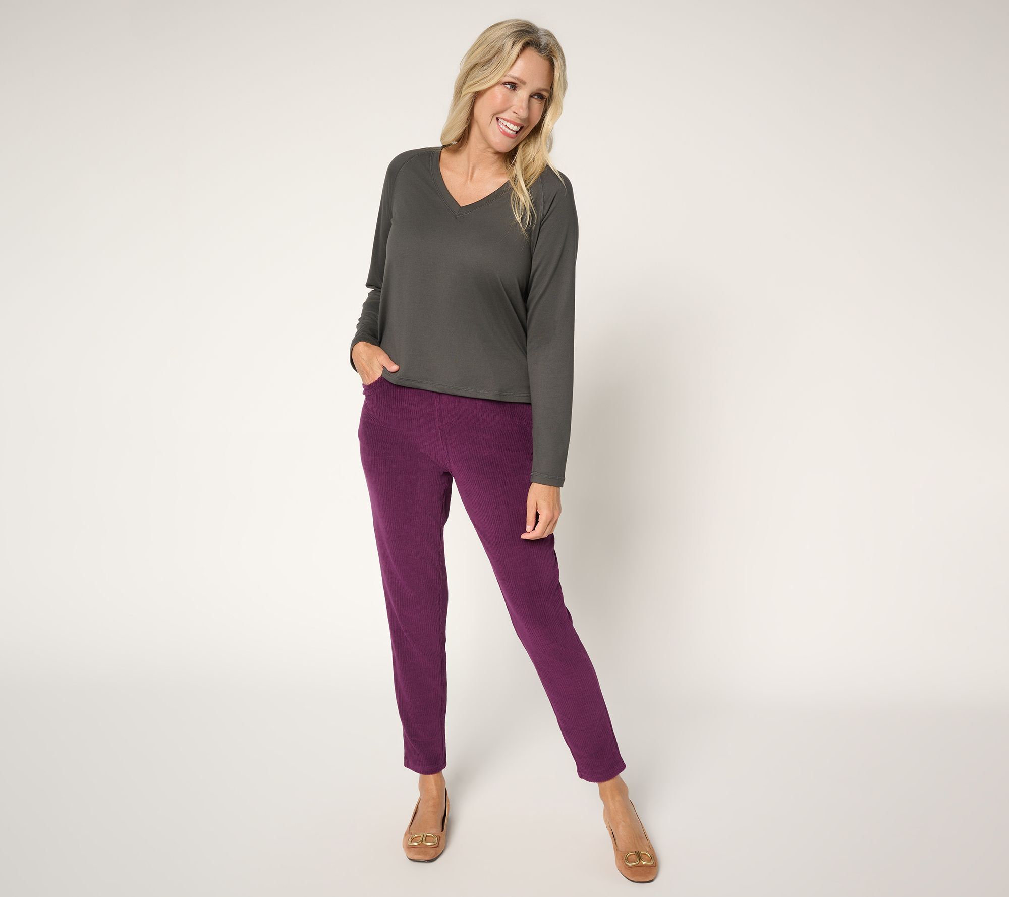 Quacker Factory Tall Corduroy Slim Leg Pant with Back Pockets