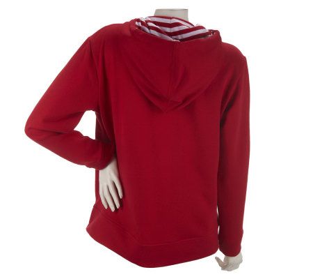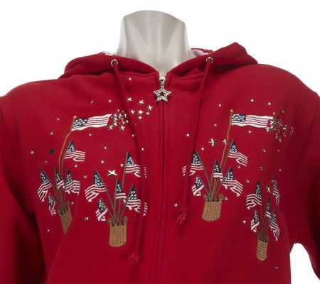 If you are looking for a way to show off your patriotic style, this embroidered hoodie has you covered. An American flag design and rhinestone accents help you celebrate freedom with sparkle and shine. From Quacker Factory.