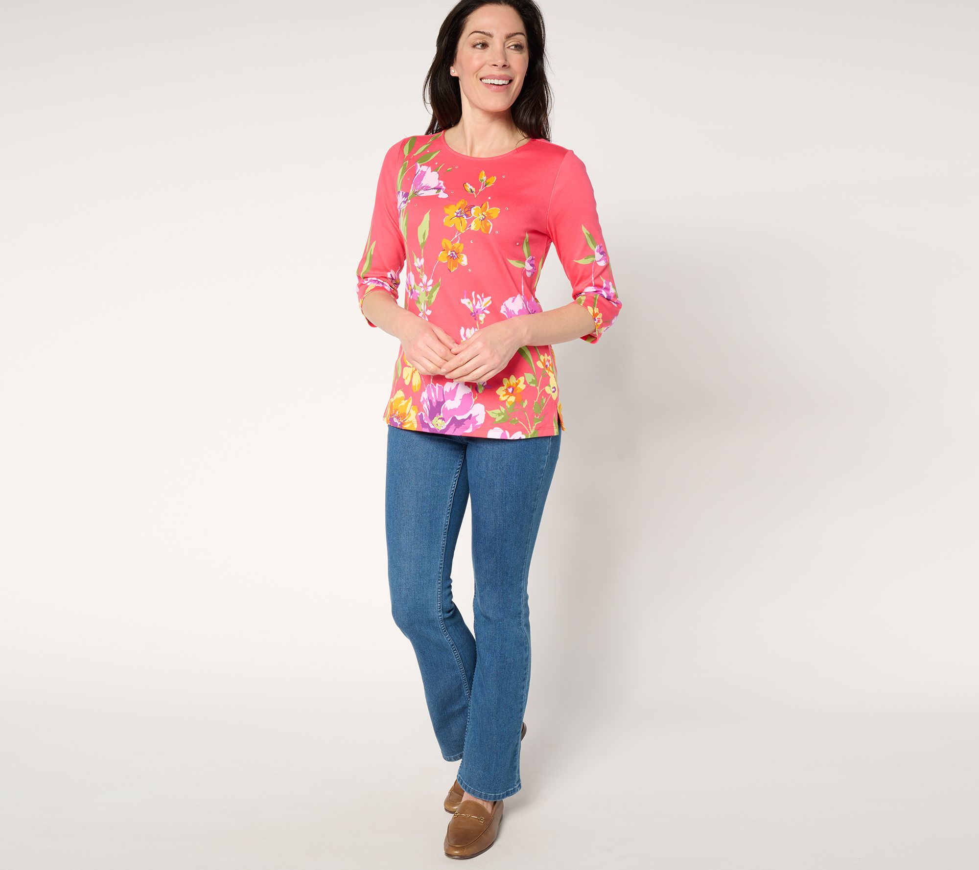 Quacker Factory Wildflower Printed 3/4 Sleeve Top