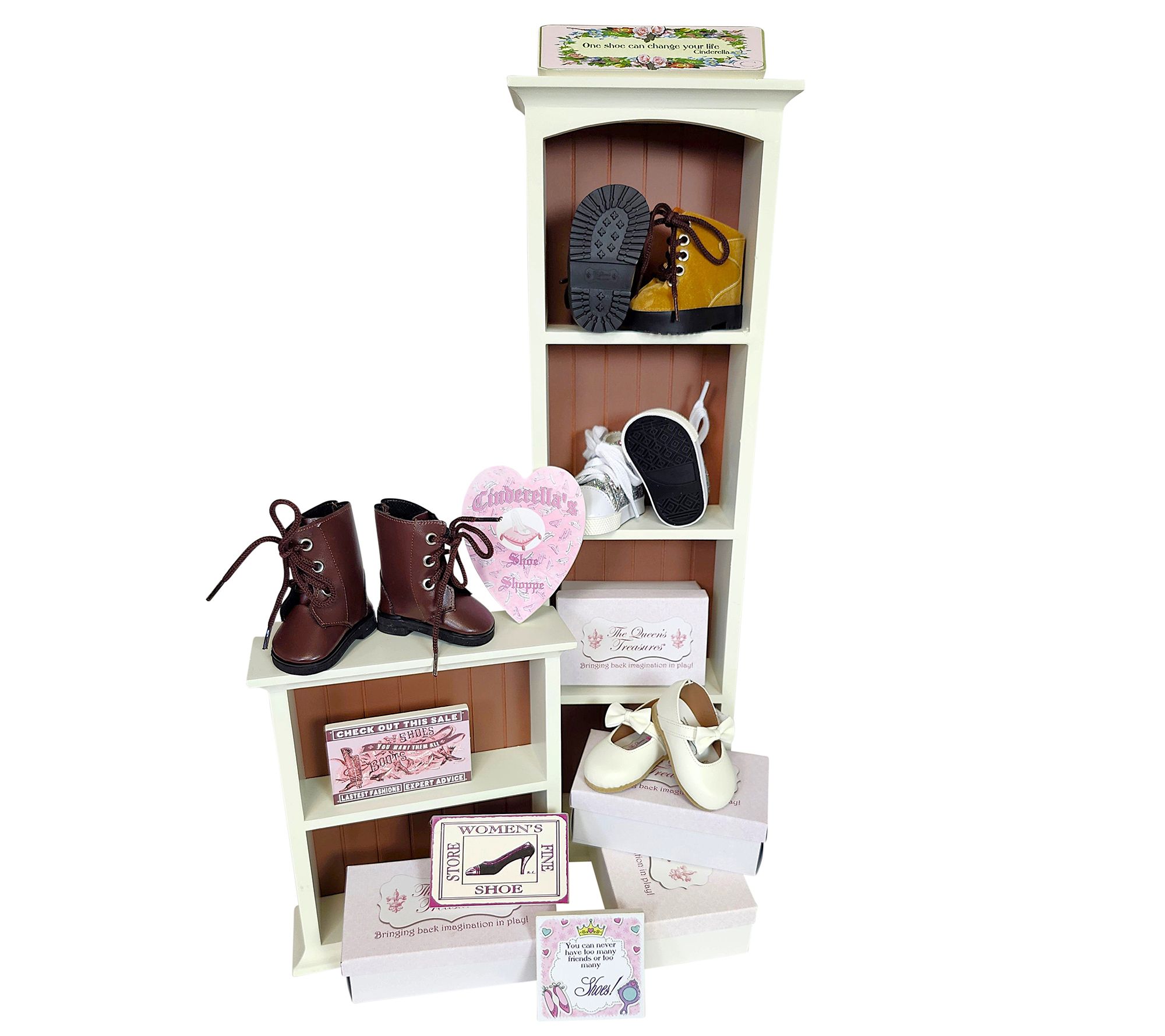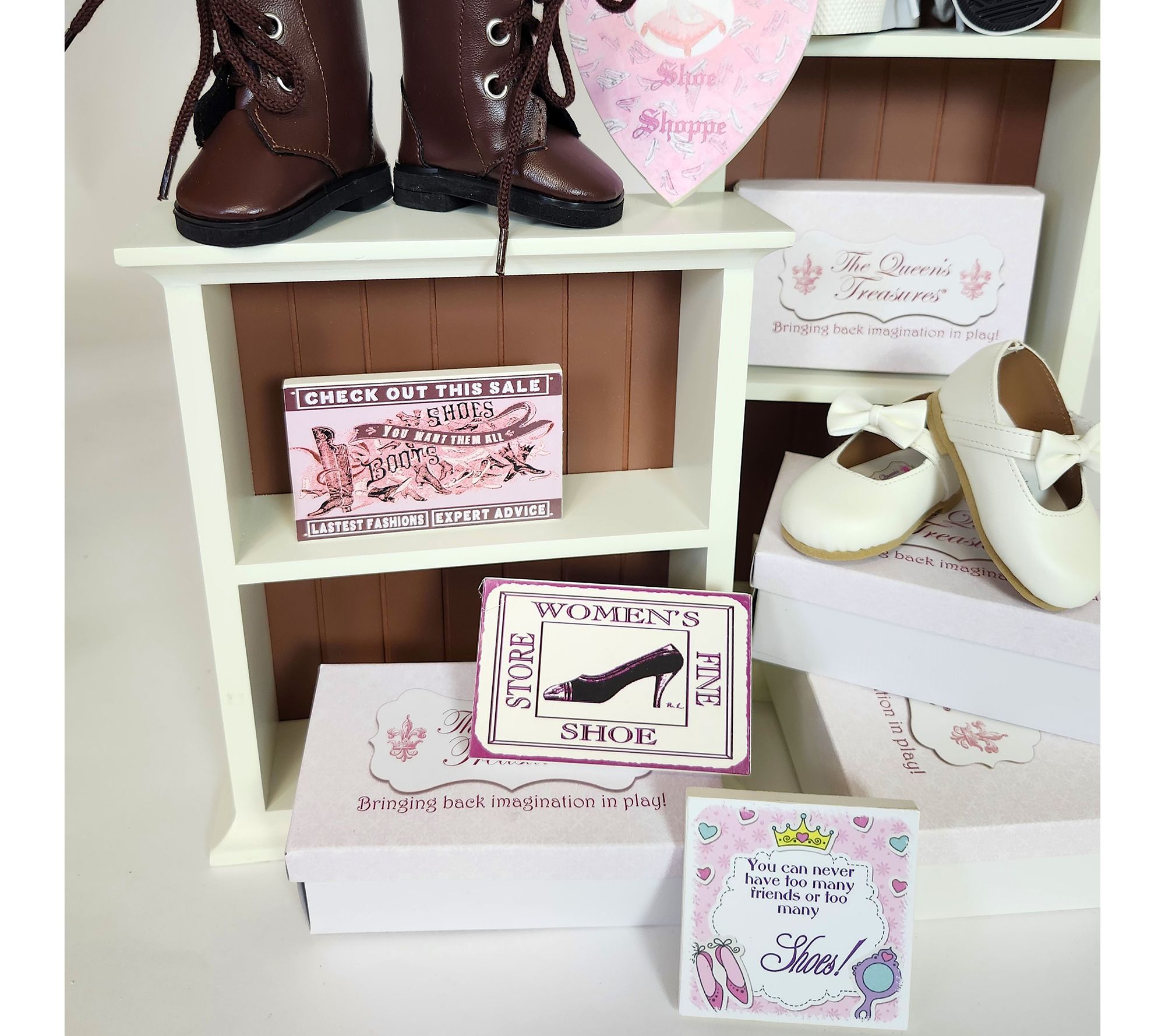 Queen's Treasures 18" Doll Shoe Collection & Shoe Shop Signs