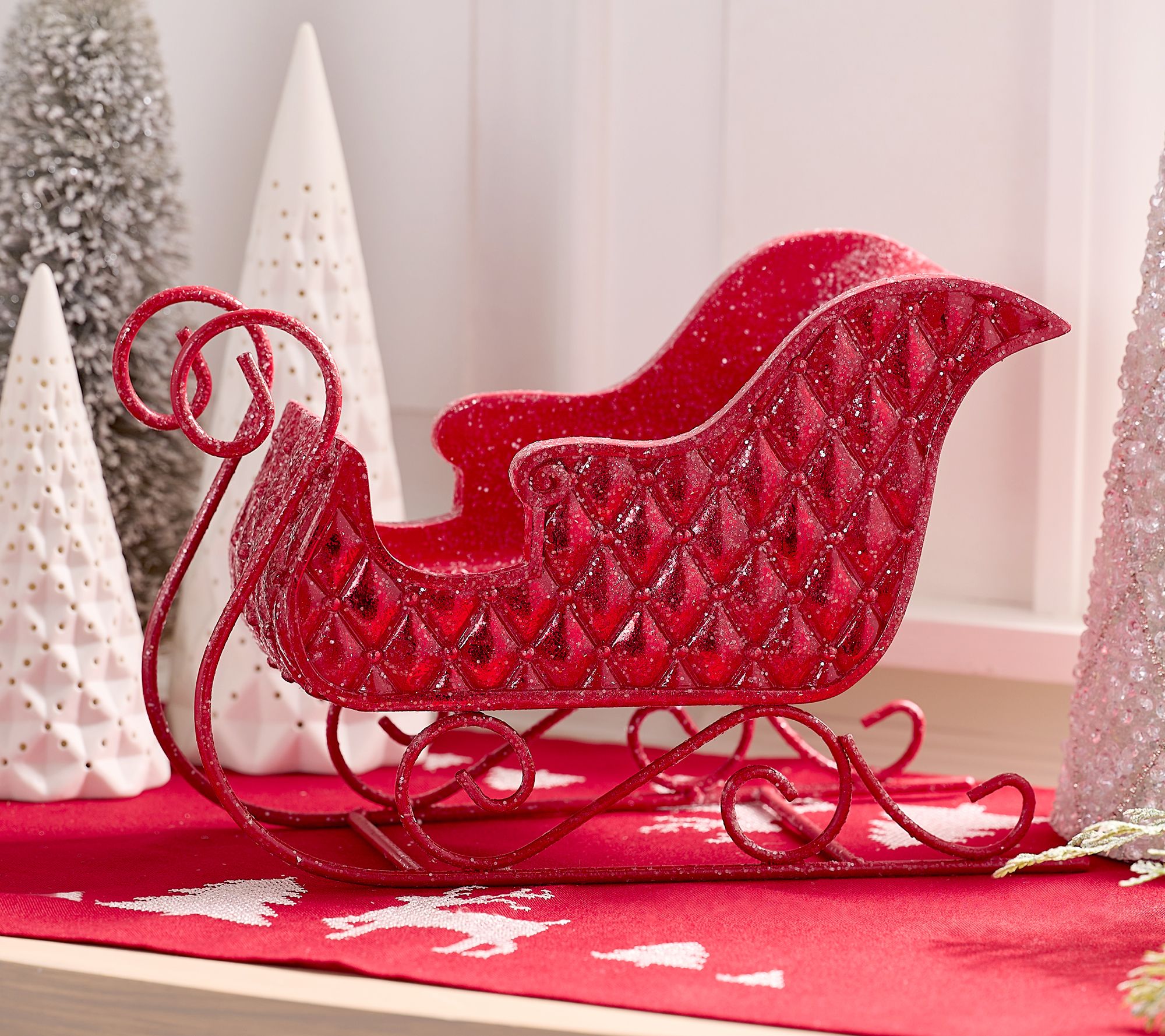 Featuring embossed quilting and scrolled runners, this resin sleigh will be a welcome addition to your holiday decor. Fill it with ornaments or pine branches for a festive display. From the Valerie Parr Hill Collection.
