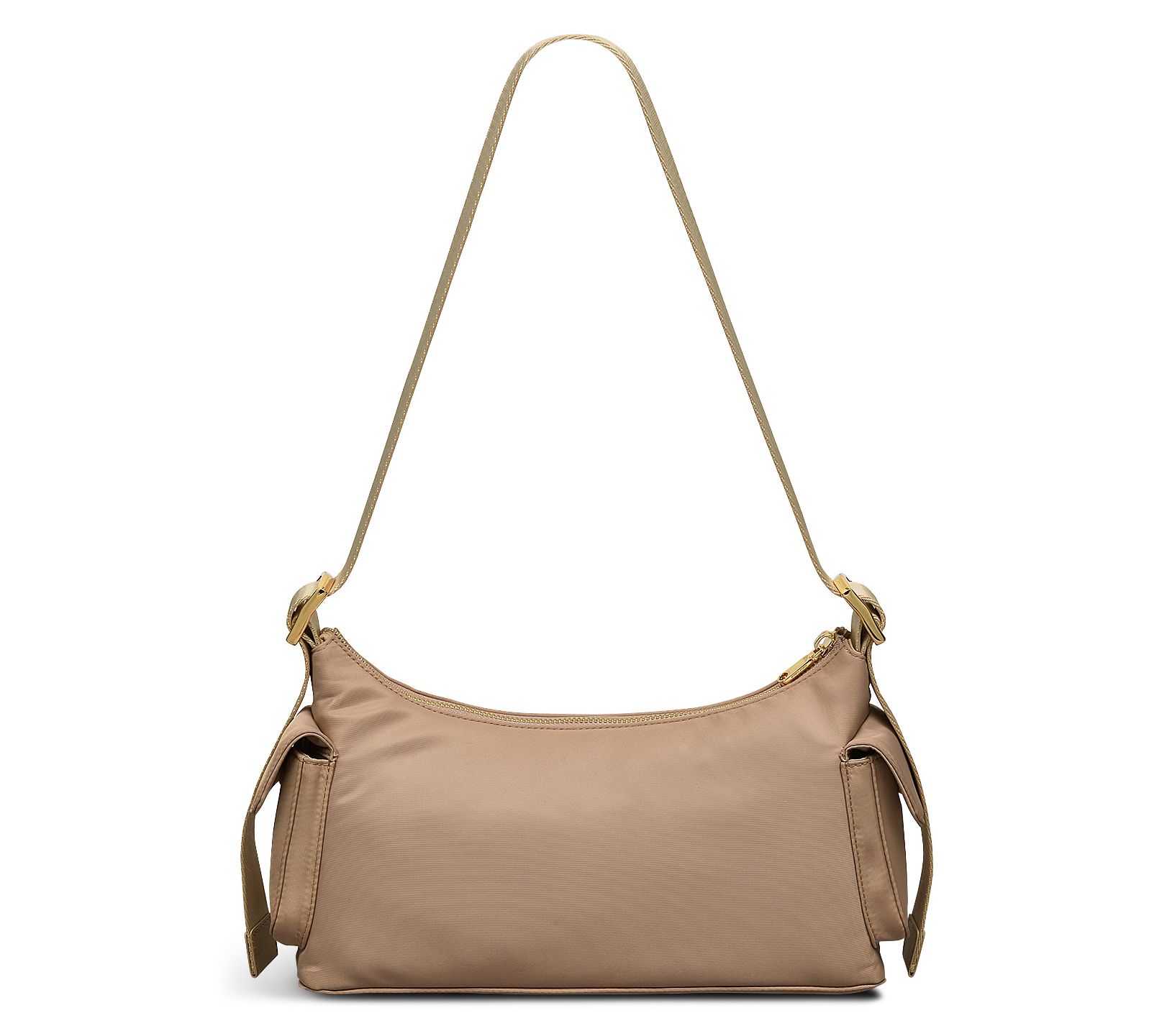 • Adjustable webbing strap, zip top closure, front and side patch pockets