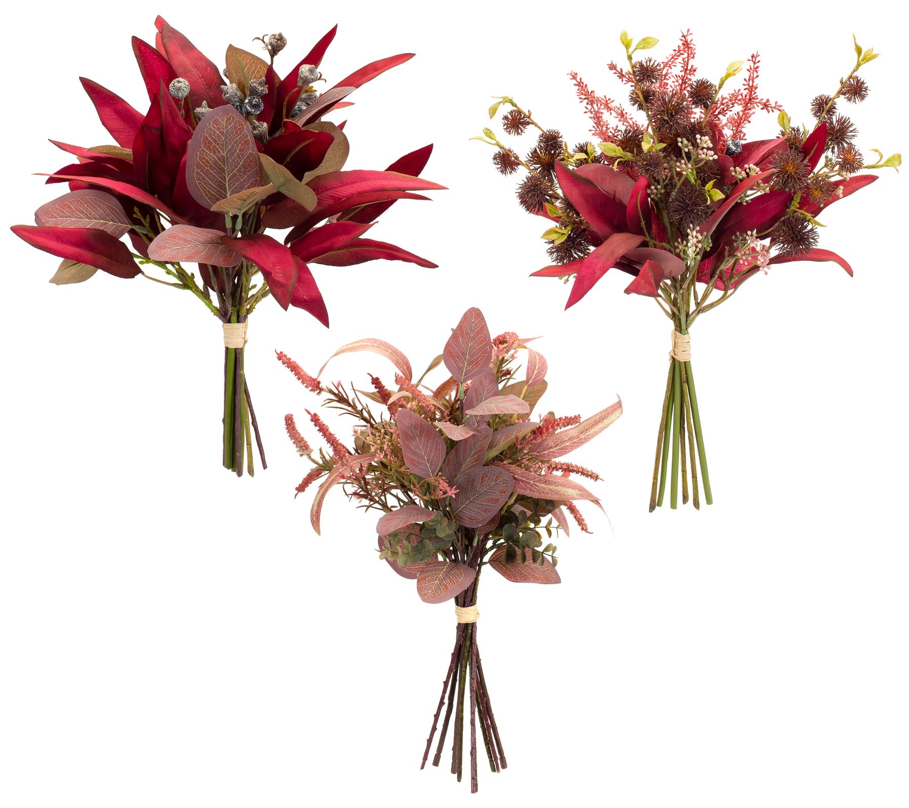 Get your home ready for the harvest season when you have this set of six faux bouquets, each featuring beautiful fall foliage in a mix of warm colors. From Melrose International.