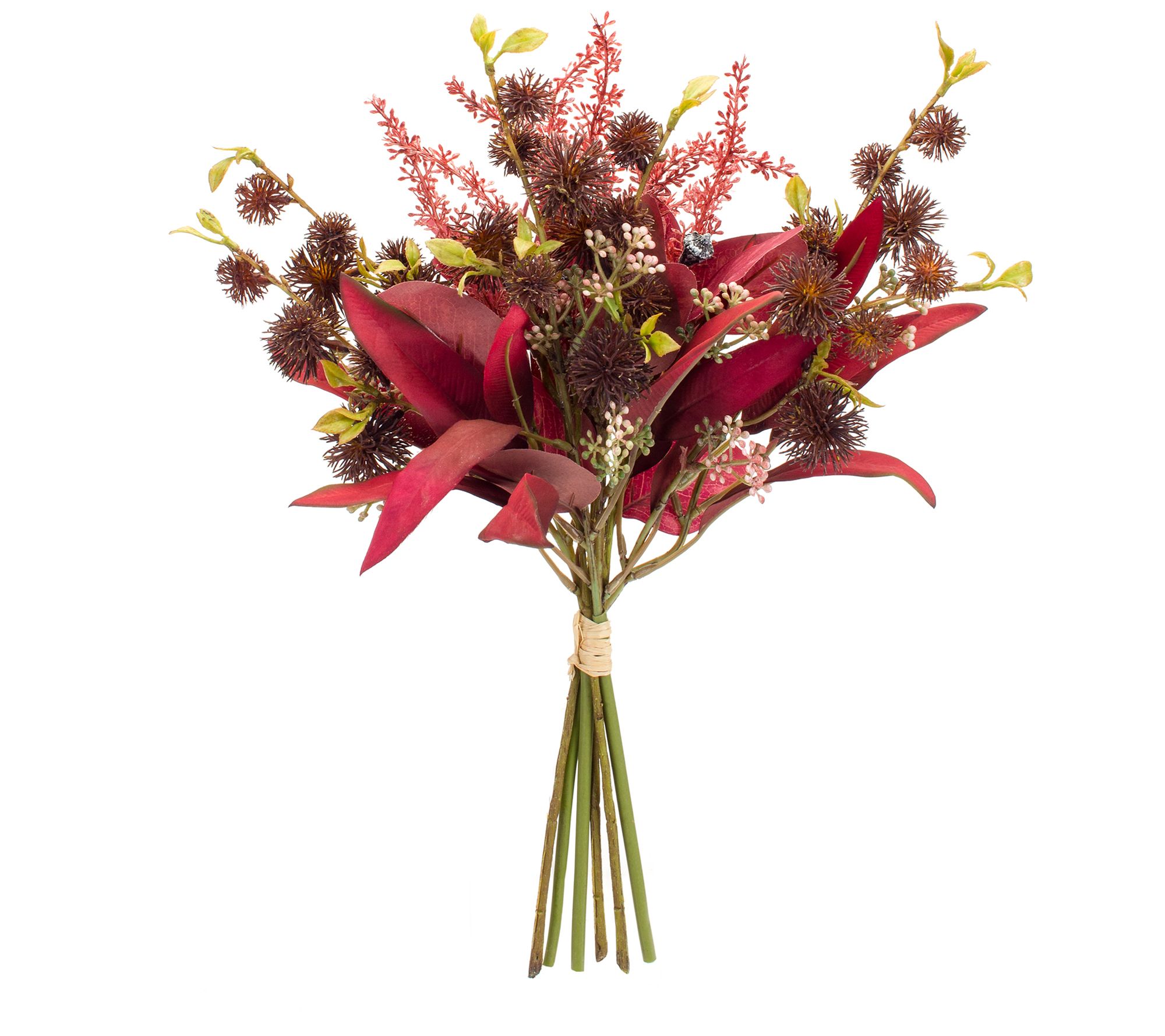 • Includes six faux foliage and thistle bouquets
