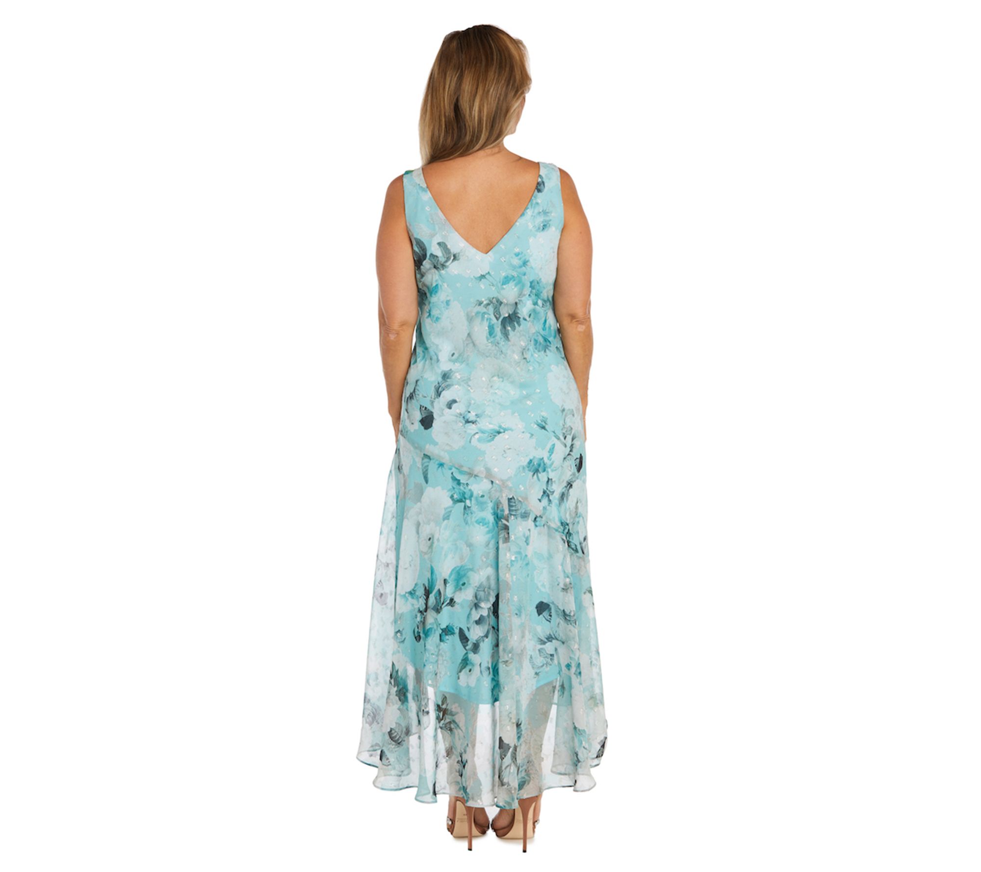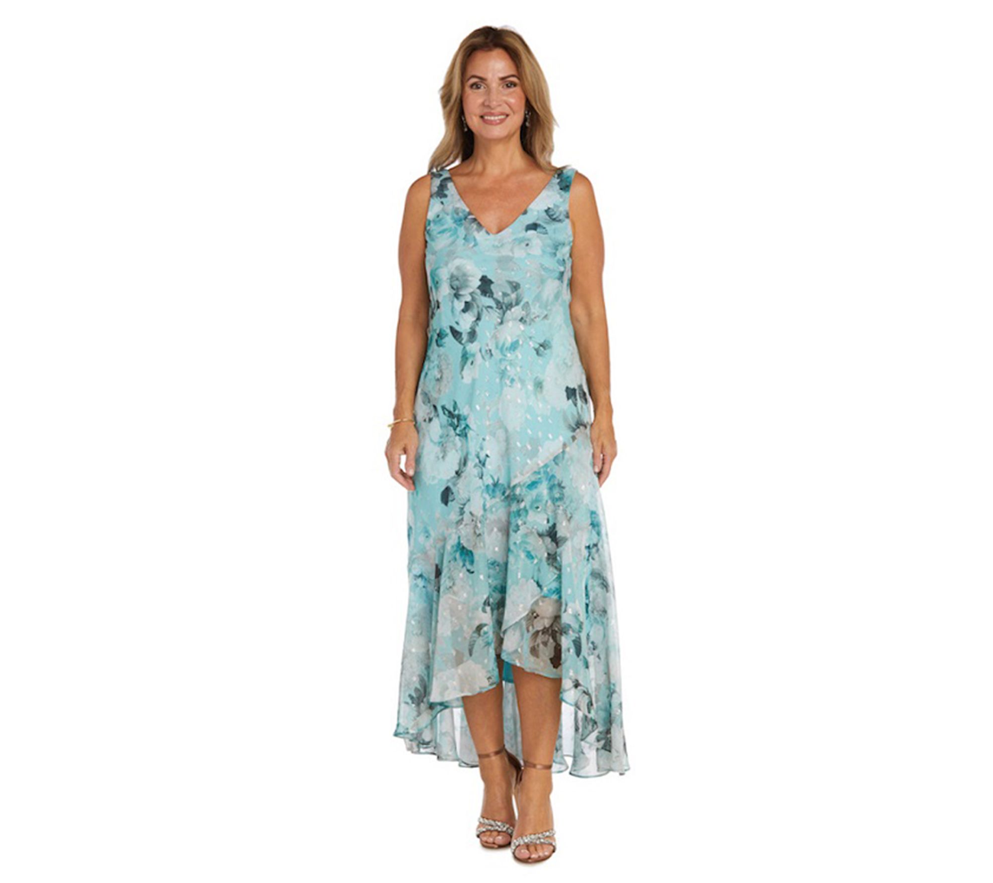 • Dress Features: V-neckline, sleeveless, mid-calf length, hi-low hem