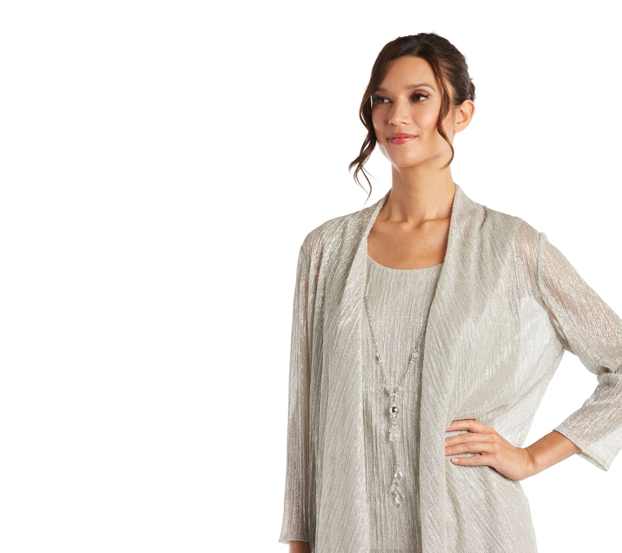 Haven't seen them in forever? Dress to impress in this elegant (and easy to wear!) three-piece occasion look. From R&M Richards.
