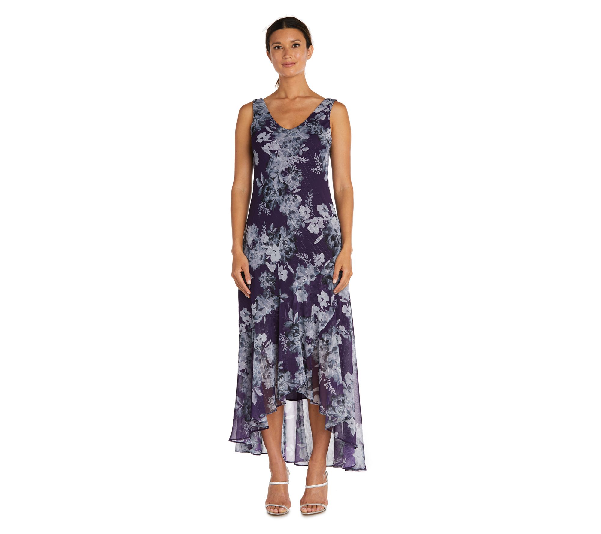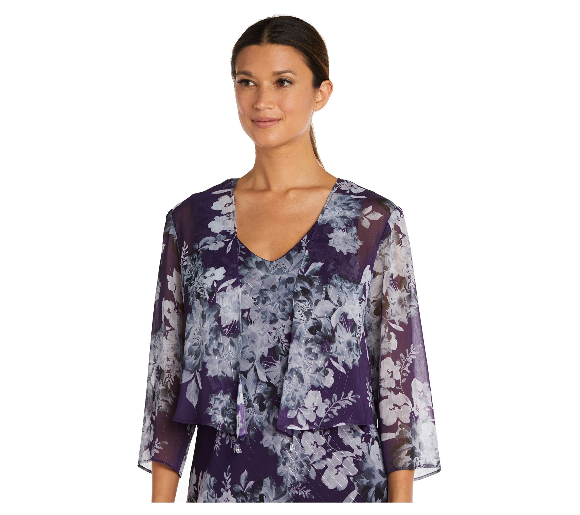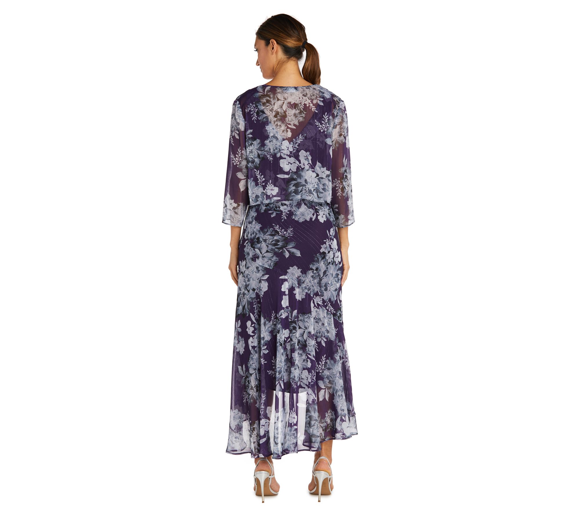 Make an elegant impression at brunch or an evening soiree in this flowing hi-low dress accompanied by a matching jacket. From R&M Richards.