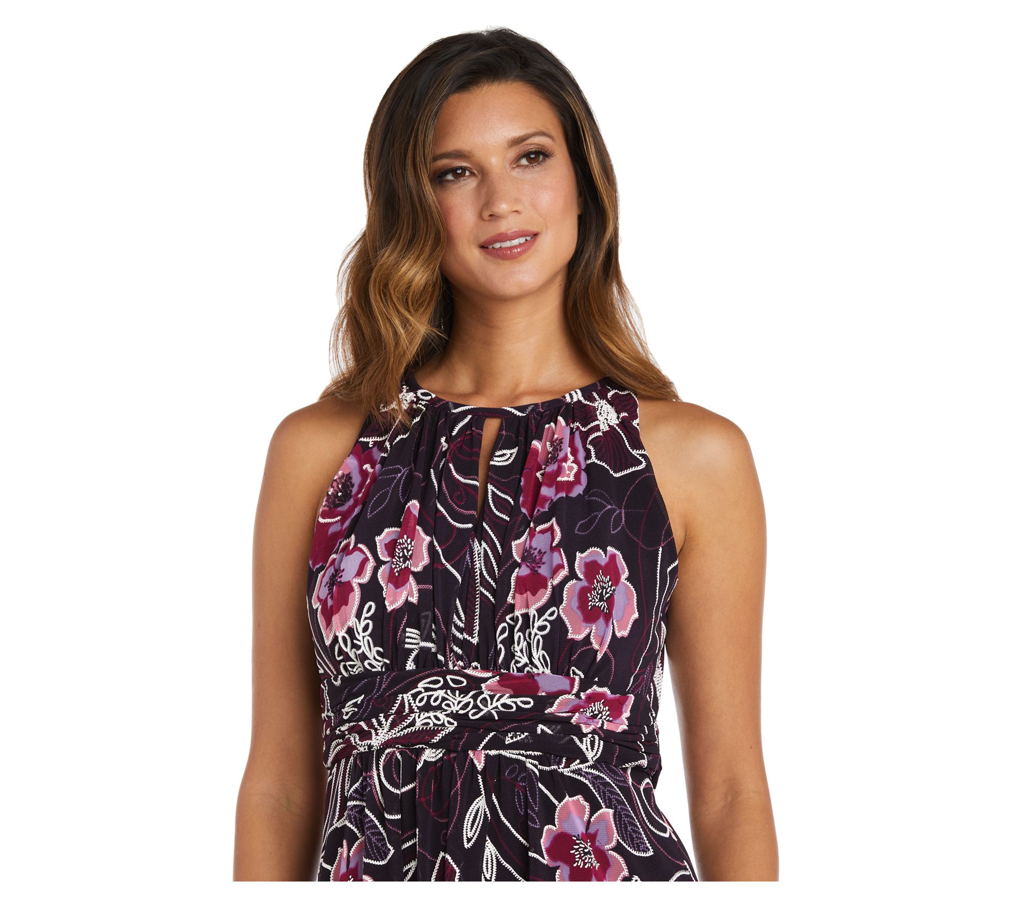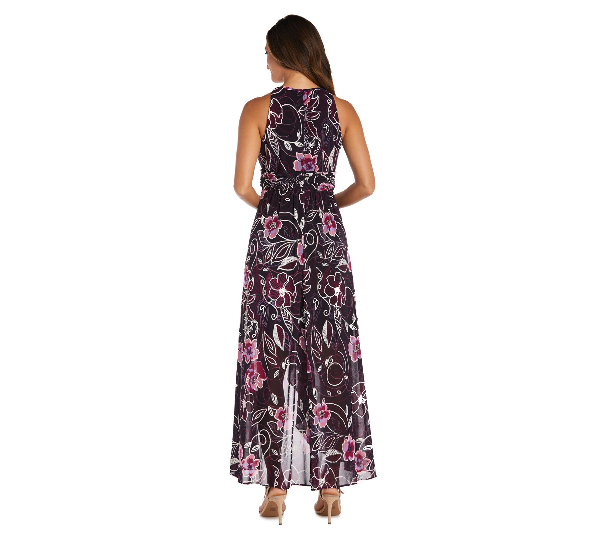 Whether at brunch or an evening soiree, this versatile dress ensures a statement-making entrance with its flowy length and lush print. From R&M Richards.