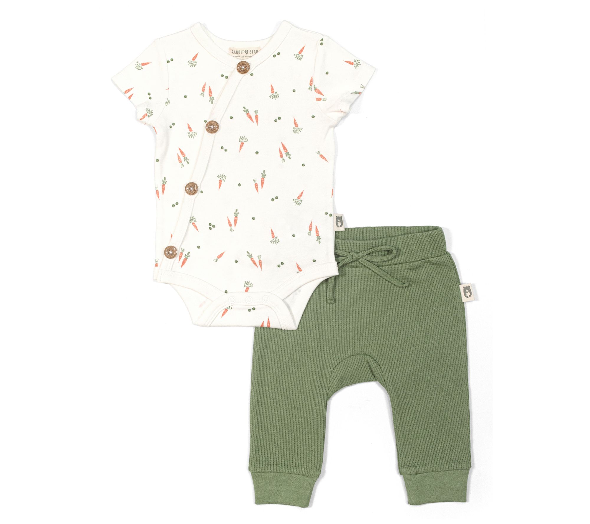 Clothe your baby in comfort cozy with this cute printed bodysuit and coordinating bottoms. From Rabbit + Bear.