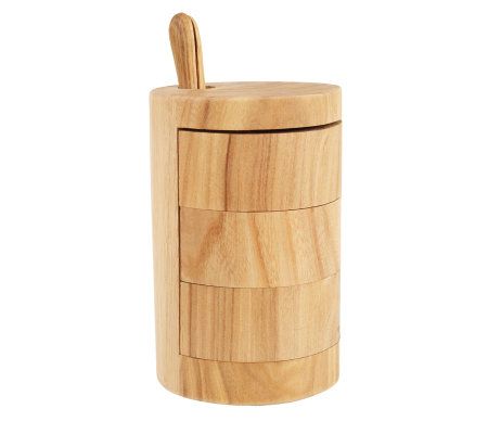 Rachael Ray 3-Compartment Round Oak Salt Box
