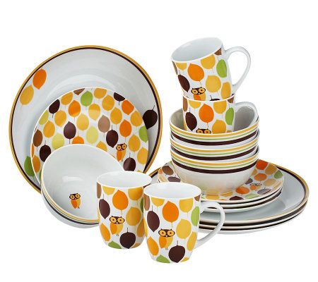 What a hoot! This 16-piece table setting is adorably novel with its clever owl print. And, it complements Rachael Ray's popular Bubble & Brown bakeware, too! If you already use and love Rachael's durable, beautiful cookware pieces, you've met their match with this playful dinnerware collection.