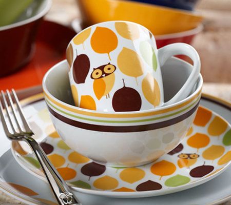 "Hoo" wouldn't love these peppy pieces? The kitschy owl-and-leaf patterned design adds a pop of retro-modern zestiness to your table setting. Not just adorable--the pieces are made to stand up to daily use. It's a wise choice--one you'll enjoy every day! You're sure to get smiles, no matter what's on the menu.