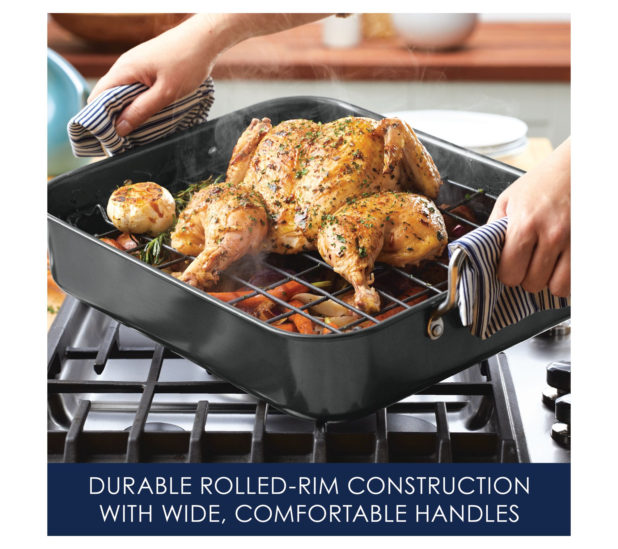 • Includes roasting pan and reversible rack