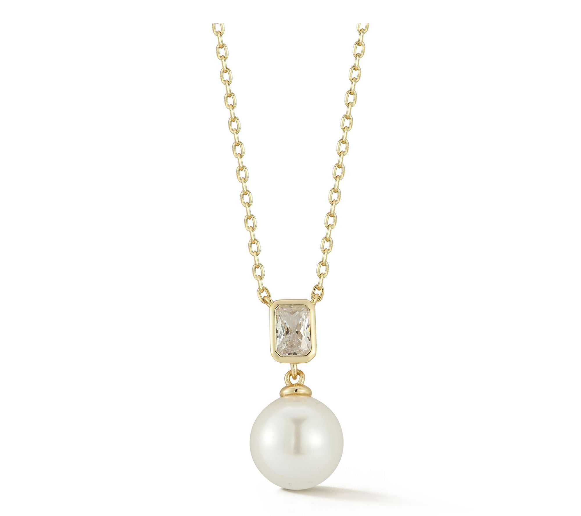 Your evenings just got more glamorous with this exquisite necklace featuring a freshwater cultured pearl drop, beautifully complemented by emerald-cut sparkle. From Rachel Zoe.