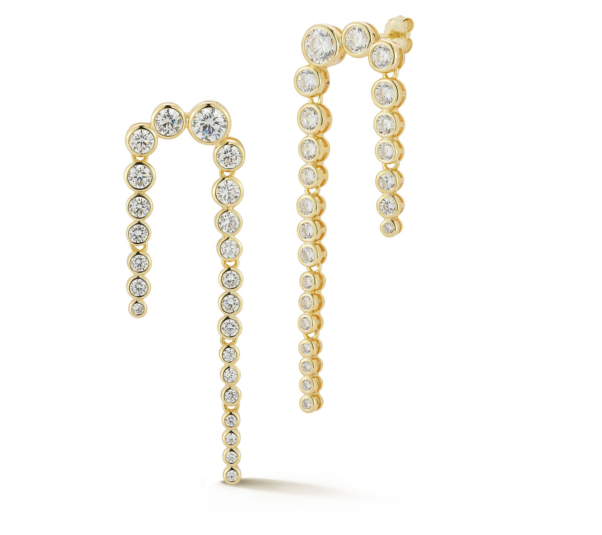 Elevate your glamour quotient with these Rachel Zoe graduated pave dangle earrings. The elegant design featuring graduated cubic zirconia stones in a curved drop pattern will beautifully frame your face. From Rachel Zoe.