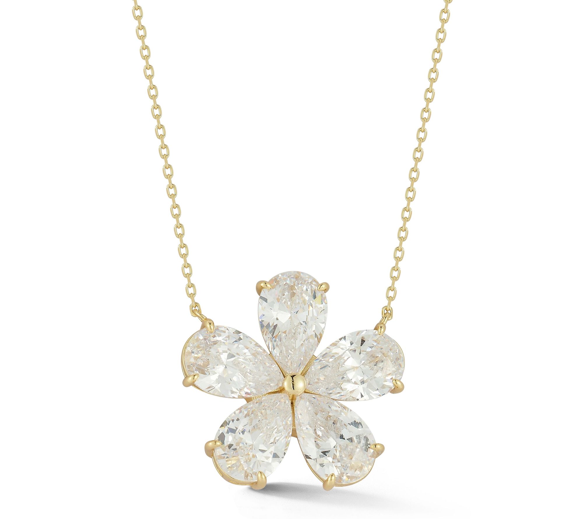 Turn any occasion into a celebration with this statement flower pendant necklace. Large pear-cut cubic zirconia stones shimmer from every angle, bringing standout sparkle to your favorite dress or everyday look. The adjustable chain lets you style it alone or layered for extra flair. From Rachel Zoe.
