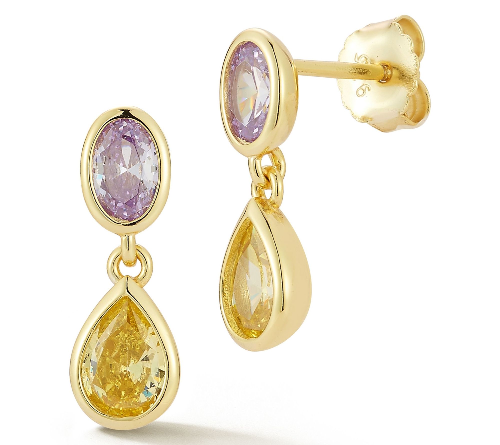 Whether it's an elegant evening out or a sophisticated day at work, these dangle drop earrings add the finishing touch to any outfit. Featuring a pear-cut and oval-cut cubic zirconia, they exude timeless elegance with every movement. From Rachel Zoe.
