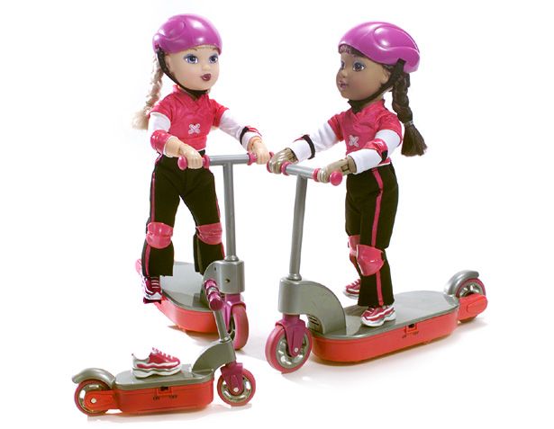 Sensational skater chick. High on the heels of the scooter craze, Scooter Samantha is the fully-articulated doll that actually pedals and rides her very own scooter through matching scooter radio control. You can also dress Samantha in fun extreme scooter wear with her skater wear, helmet, knee and elbow pads. She can be removed from her scooter for extended play. Batteries not included. Ages 6 and up. 90-day LMW. Caucasian or African American. Made in China.