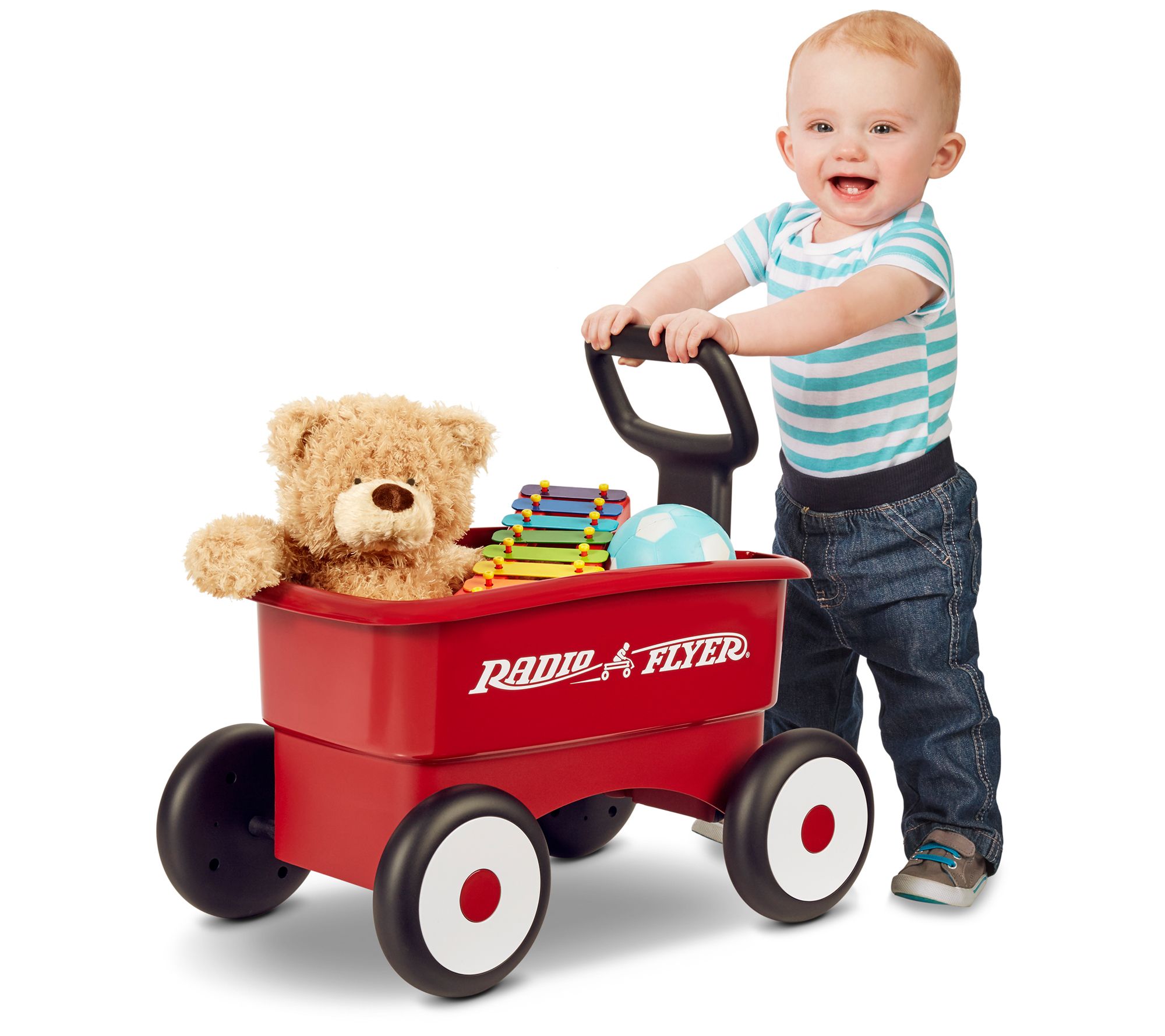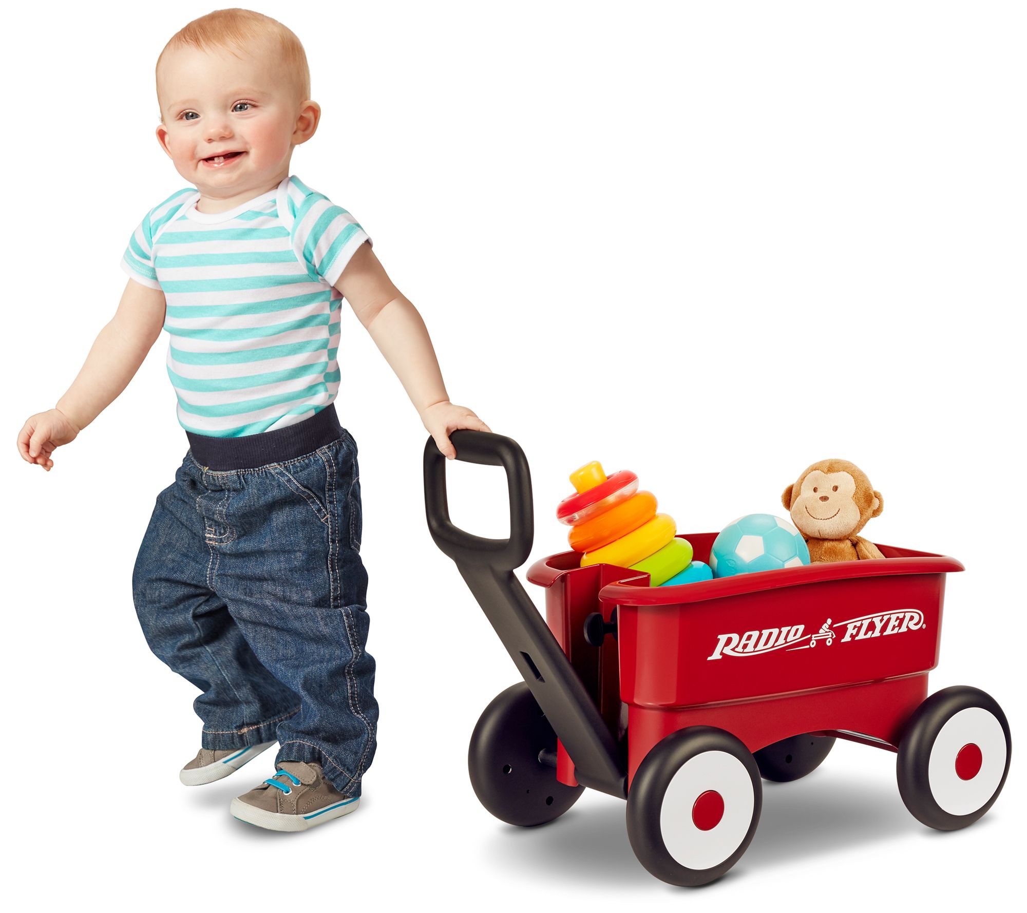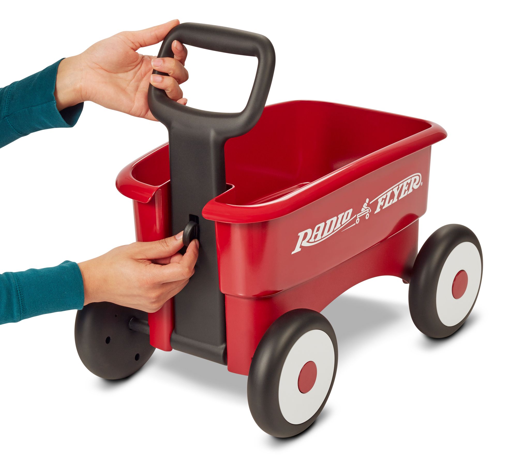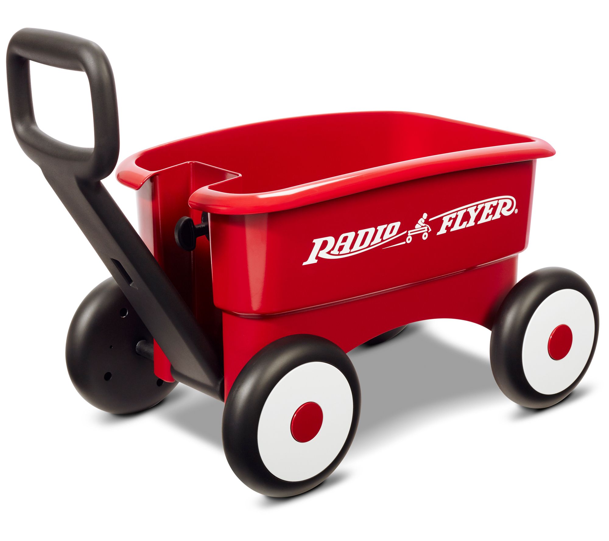 Lock the handle on this durable wagon to build confidence and balance for beginner walkers. Release it for a fully functional wagon that can be used to haul toys back and forth. From Radio Flyer.