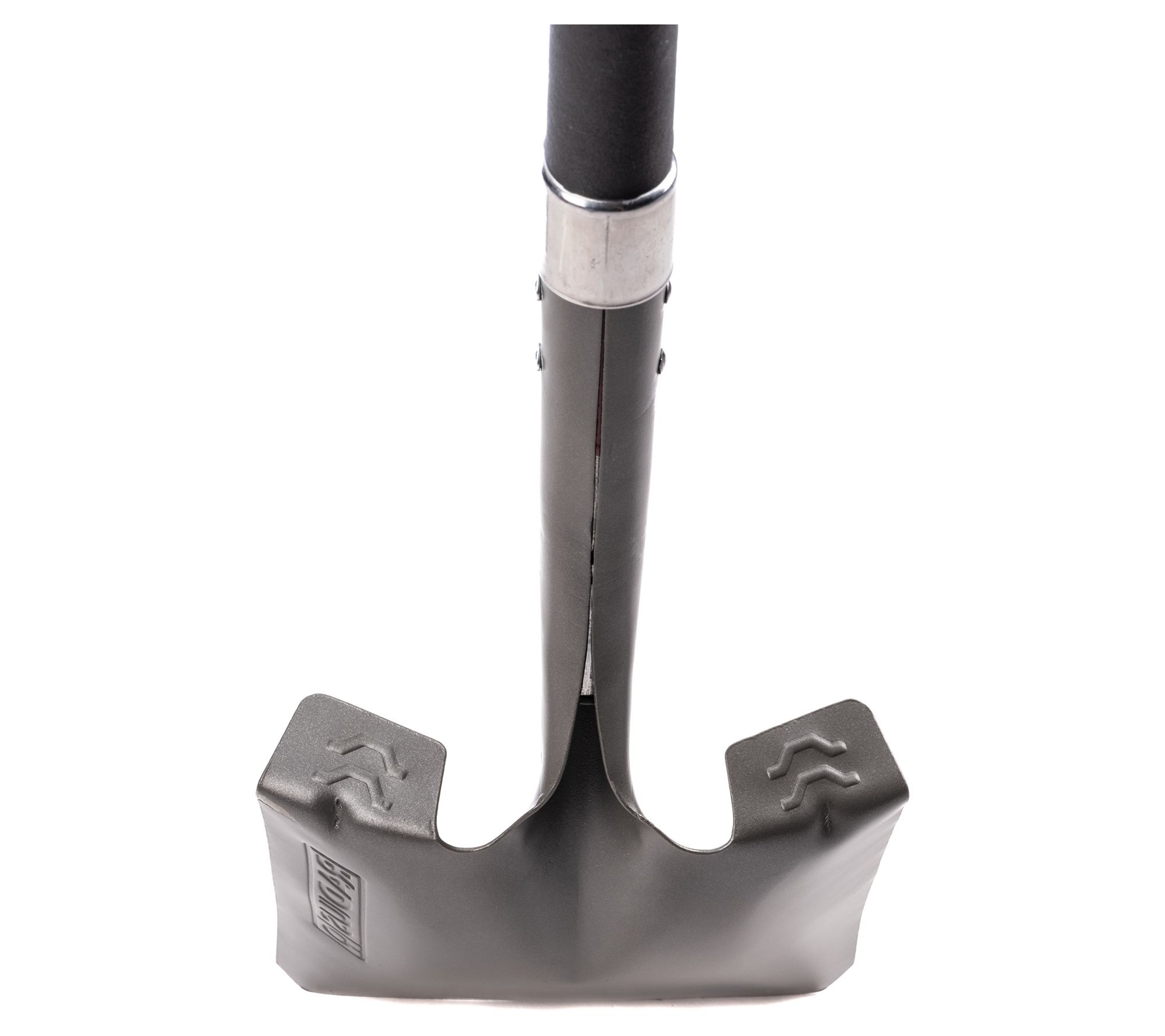 • Stainless collar, dual riveted blade, and oversized textured footstep