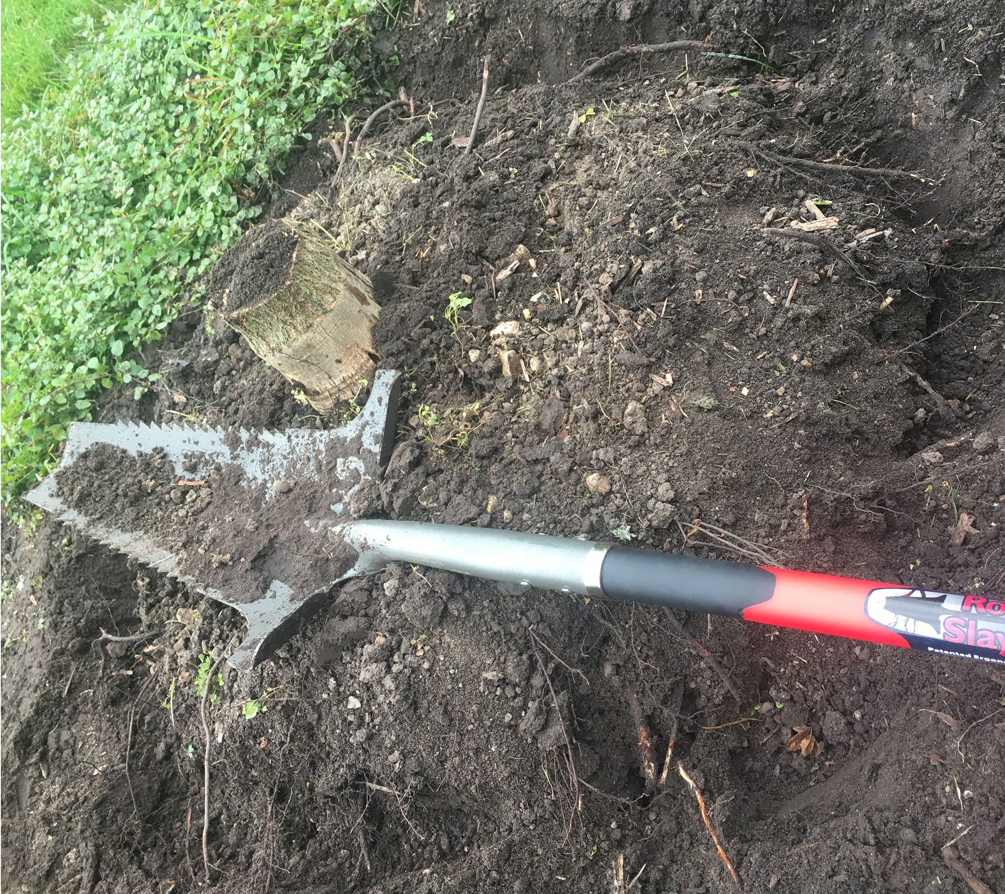 A tool guaranteed to make life easier for every gardener, the Root Slayer's saw-tooth blade cuts through roots, making digging in the garden a cinch. From Radius Garden.