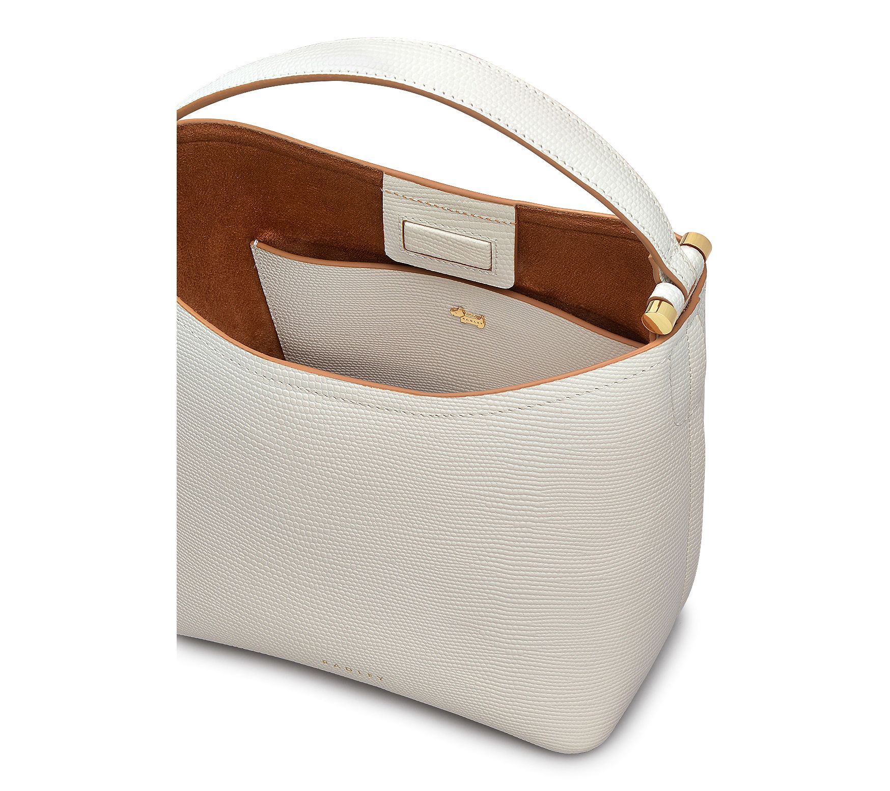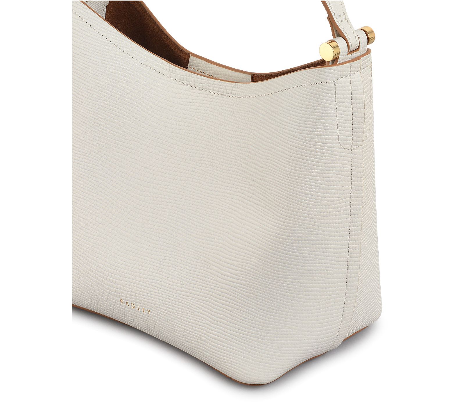 Add a touch of elegance to your ensemble with the Bathurst Mews faux lizard small leather satchel. Crafted for those memorable occasions, whether it's a summer wedding or a winter party, this grab bag promises chic versatility. The lizard-embossed texture paired with contrast edge paint and high-shine goldtone hardware exudes sophistication, while the detachable strap allows for hands-free moments. With a functional interior slip pocket, it keeps your essentials organized. From Radley.