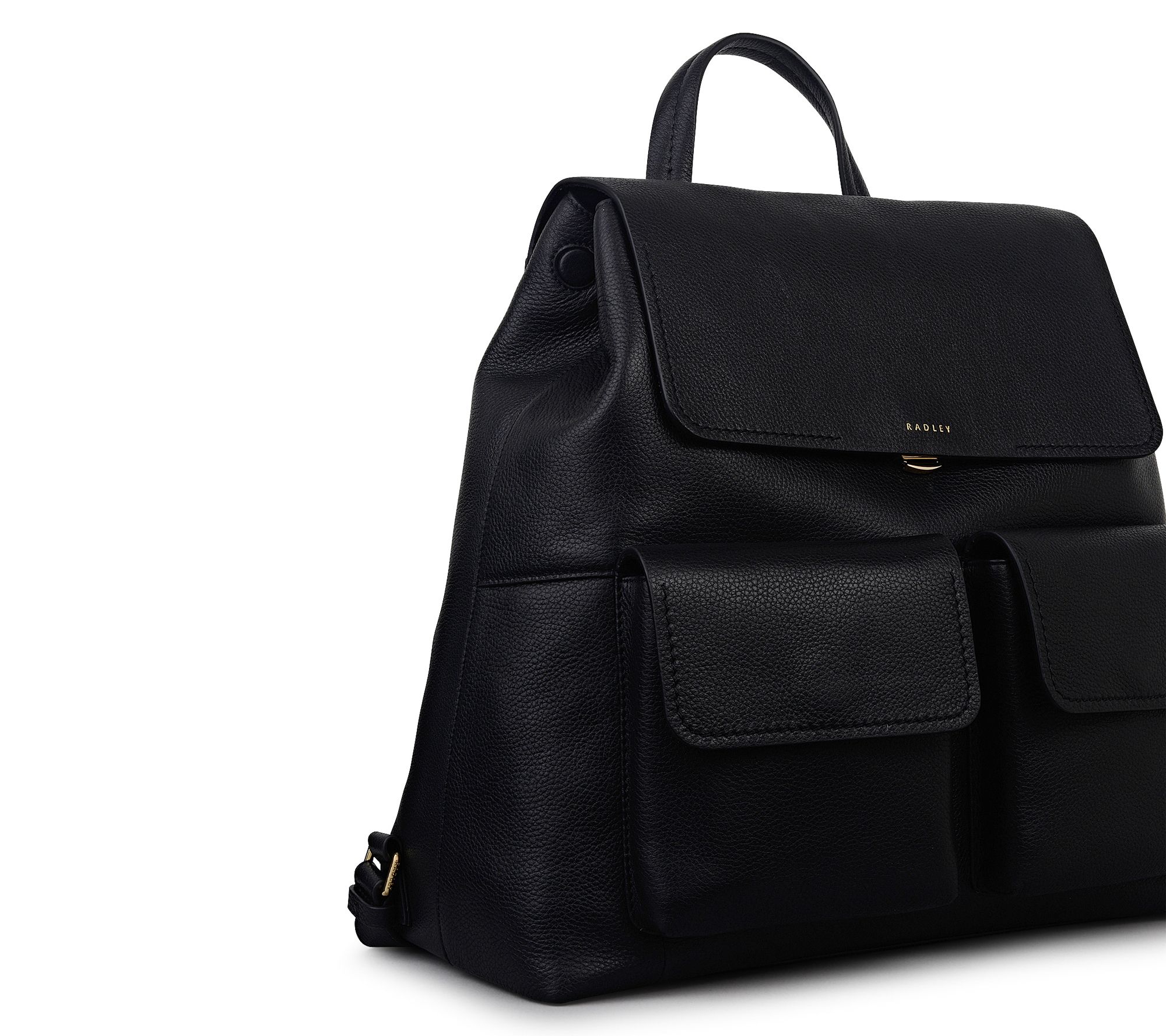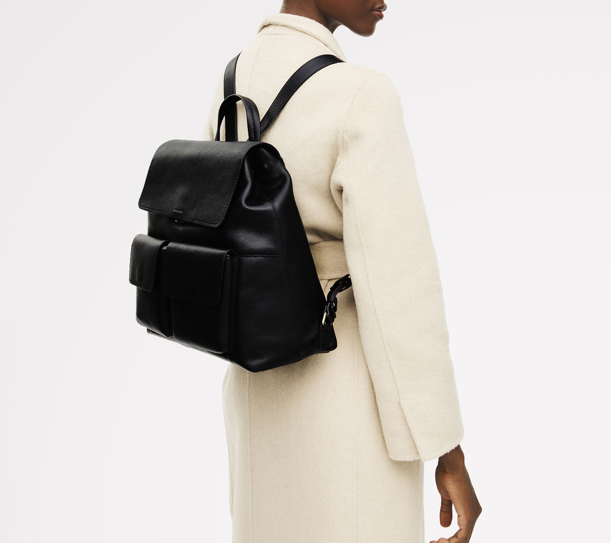 From city commutes to impromptu weekend adventures, this large leather backpack blends laidback utility styling with refined details -- think contrast-stitched flap pockets, padded grab handle, and leather-covered magnetic closures. Adjustable straps let you find your just-right fit while a roomy interior (including a padded laptop slip pocket) keeps essentials organized. From Radley.