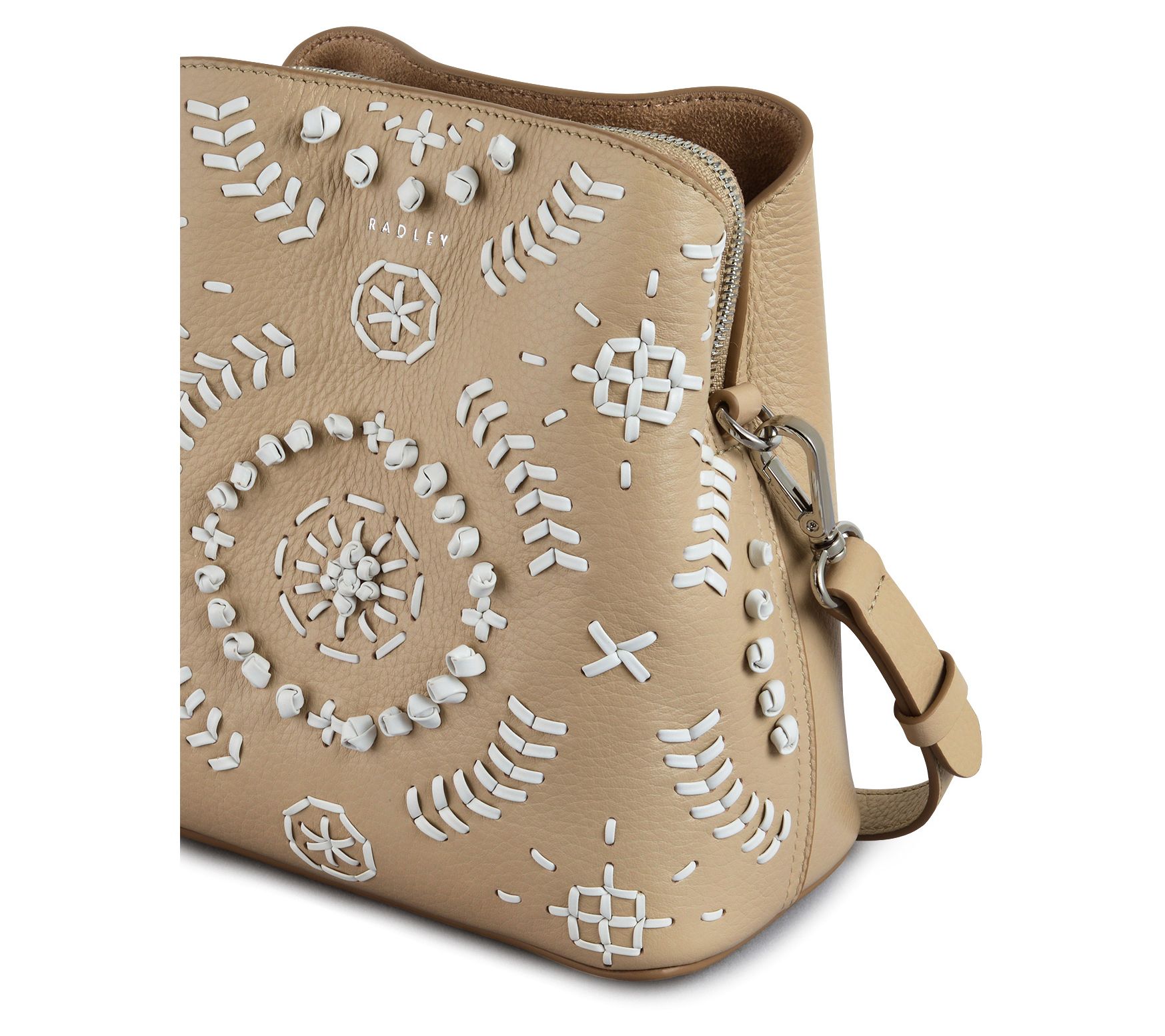 Whether you're heading out for errands or catching up with friends, this small leather crossbody keeps essentials close in effortless style. Thoughtful details like the hand-finished Broderie-inspired stitching and knotting add a crafted touch, while three smart compartments help keep your keys, phone, and more organized for any outing. From Radley.