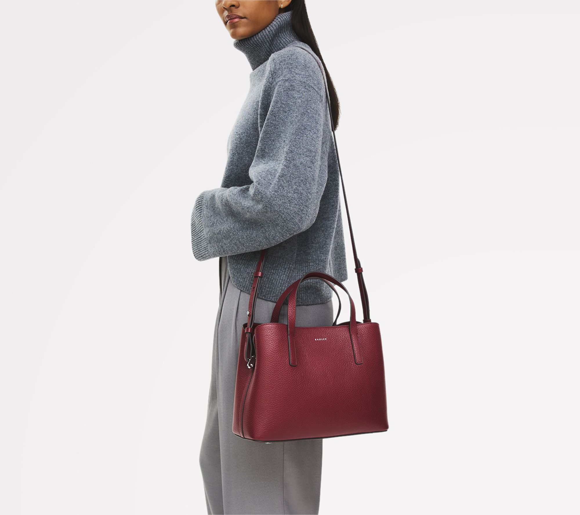 With its sleek silhouette, this leather satchel brings effortless charm to busy weekdays and weekend outings alike. The triple compartment interior keeps keys, essentials, and tech organized, while both grab handles and an adjustable, detachable crossbody strap make any commute or coffee run feel stylish and easy. From Radley.
