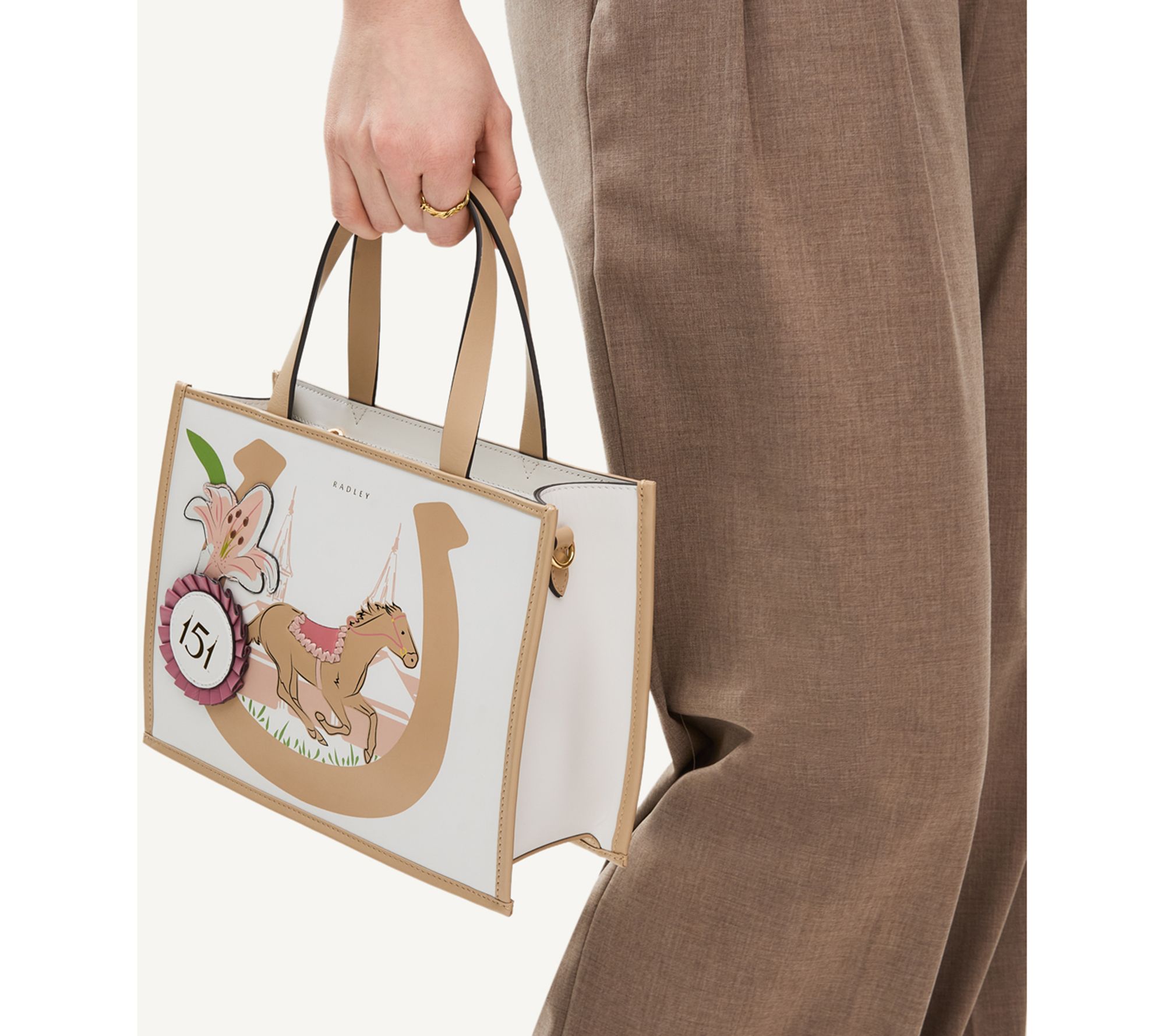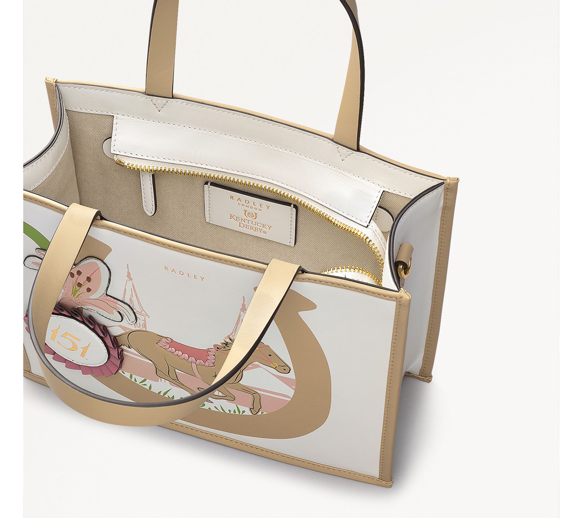 Your perfect Derby accessory is here! Celebrate the 151st races with this collectible Radley x Kentucky Derby satchel. Take in every race day memory, crafted in expert leather with illustrations of the Twin Spires, vibrant flowers, and a 3D leather rosette. From Radley.