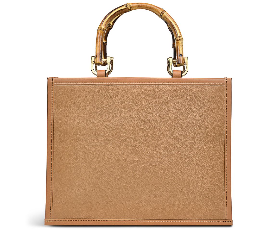 • Detachable/adjustable strap, magnetic snap closure, double handle, bamboo-style handles, patchwork design, detachable Scottie dog charm, bound edges, shiny goldtone hardware