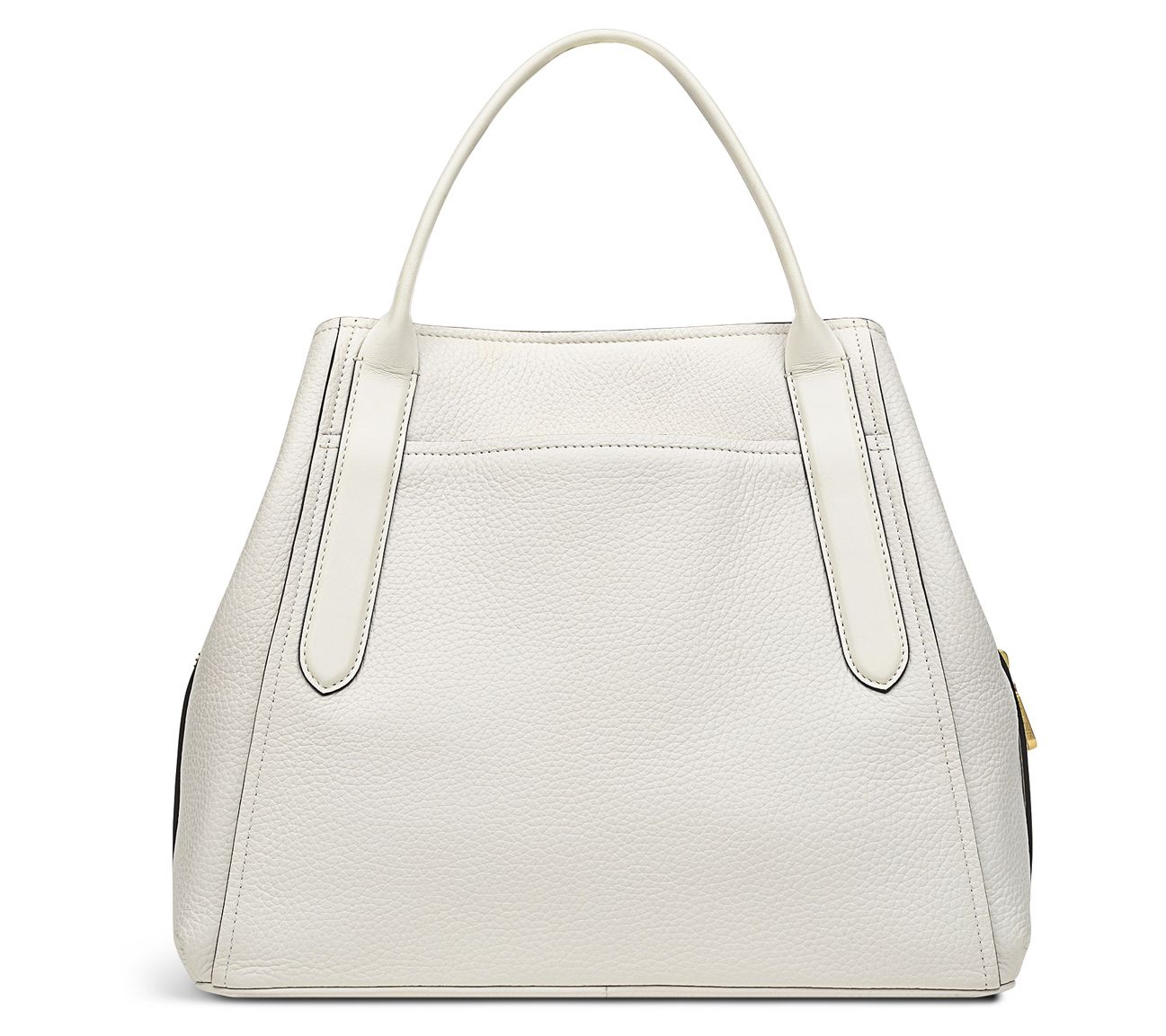 • Zip-top closure, twin handles, adjustable/detachable strap, padded handle tabs, back slip pocket, metal feet, shiny goldtone hardware